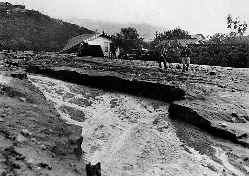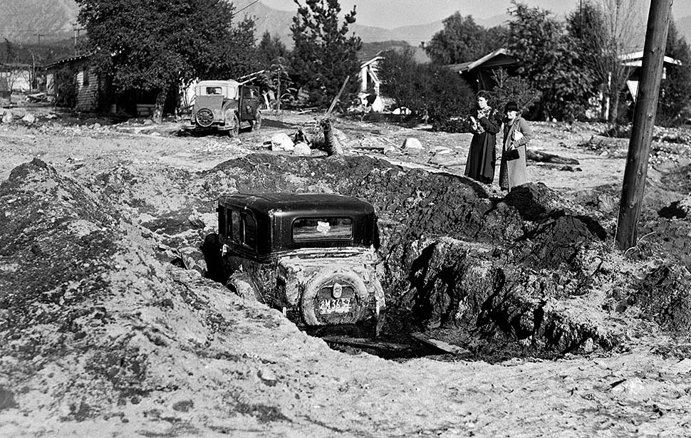 In a now-familiar Los Angeles story, late 1933 brush fires cleared the vegetation from the hills above the Montrose-La Crescenta section of Los Angeles County. When heavy rains arrived on New Year’s Eve 1934, the neighborhoods were flooded and lives lost.