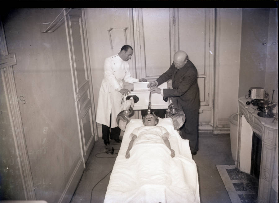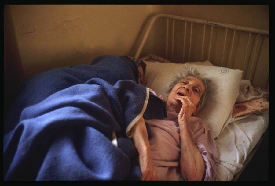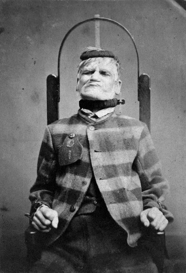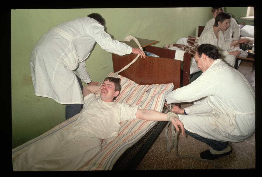 A patient sits inside Ohio’s Cleveland State Mental Hospital in 1946.A patient sits in a restraint chair at the West Riding Lunatic Asylum in Wakefield, England in 1869.Child patients sit bound and tied to a radiator inside the psychiatric hospital at Deir el Qamar, Lebanon in 1982.A patient sleeps on a thin mattress on the floor of an otherwise bare room in Ohio’s Cleveland State Mental Hospital in 1946.A patient sits alone in a dark room inside Ohio’s Cleveland State Mental Hospital on February 3, 1955.A hungry boy stands alone and eats with his hands as other boys sit together under a blanket on a bed beside a small wood-burning stove at a hospital for mentally-handicapped children in Kavaja, Albania in March 1992.A psychiatric patient poses for a photo at Paris’ Salpêtrière Hospital circa 1876-1877.A child patient sits inside Normansfield Hospital in Teddington, England on February 12, 1979.A patient at a mental hospital undergoes electroshock treatment in 1956.Patients sit inside Ohio’s Cleveland State Mental Hospital in 1946.Workers restrain a patient at a hospital in Moscow, Russia on February 19, 1992.A patient suffering from “general paralysis” poses for a photo at the West Riding Lunatic Asylum in Wakefield, England, 1869.On March 29, 1950, at Philadelphia’s Bella Vista Sanitorium, a fire killed nine patients, five of whom had been chained to concrete slabs like the one pictured.A nurse tests out electronic equipment designed to monitor various patient data at a psychiatric hospital in Toronto on March 12, 1964.Pioneering and prolific lobotomist Dr. Walter Freeman performs a lobotomy with an instrument similar to an ice pick at Western State Hospital in Lakewood, Washington on July 11, 1949.One of Walter Freeman’s lobotomy patients ten days after the procedure. 1942.A young patient’s rotted teeth, due to poor dentistry, are revealed at London’s Friern Hospital (previously known as the Colney Hatch Lunatic Asylum) circa 1890-1910.A patient lies on the floor of Ohio’s Cleveland State Mental Hospital in 1946.Patients go about their day inside Ohio’s Cleveland State Mental Hospital in 1946.A patient stands in a straightjacket inside Ohio’s Cleveland State Mental Hospital in 1946.A psychiatric patient poses for a photo at Paris’ Salpêtrière Hospital circa 1876-1877.Nurses hold down a patient receiving electroshock treatment at a facility in England on November 23, 1946.A surgeon uses a brace and bit to drill into a patient’s skull before performing a lobotomy at a mental hospital in England, November 1946.Doctors test a new method of using radio waves to treat psychiatric patients at a hospital in Paris on May 13, 1938.Two patients rest in the sleeping area of Ohio’s Cleveland State Mental Hospital in 1946.Patients at the Riul Vadului Mental Asylum in Romania huddle together in an unheated room in the middle of winter. Date unspecified.Dr. James G. Shanklin administers electric shock and anesthesia in preparation for Dr. Walter Freeman to demonstrate his new transorbital lobotomy procedure at Western State hospital in Lakewood, Washington on July 11, 1949.A prisoner sits inside the West Riding Lunatic Asylum in Wakefield, England in 1869.Patients lie on a bed inside a psychiatric hospital in Bucharest, Romania. Date unspecified.A guard at Vacaville State Prison prepares a prisoner for a lobotomy in 1961. The warden of Vacaville at that time was Dr. William Keating, a psychiatrist who was convinced that “criminality” was lodged in certain areas of the brain, and so lobotomies at Vacaville became routine.Child patients sit in their room at a mental hospital in Ursberg, Germany circa 1934-1936.A patient lies back in a Bergonic chair, an early electroshock treatment apparatus, circa World War I.Dr. James Watts (left) and Dr. Walter Freeman examine a patient after lobotomy. Date unspecified.A young patient’s rotted teeth, due to poor dentistry, are revealed at London’s Friern Hospital (previously known as the Colney Hatch Lunatic Asylum) circa 1890-1910.An amputee psychiatric patient of London’s Friern Hospital (previously known as the Colney Hatch Lunatic Asylum) poses for a photo circa 1890-1910.A British patient identified only as “Mary C” poses for a photo following her lobotomy. October 28, 1960.Ties bind a patient’s feet to a bed at a mental hospital in Bucharest, Romania. Date unspecified.Patients sit inside Ohio’s Cleveland State Mental Hospital in 1946.Orderlies wash patients at the Long Grove Asylum in Epsom, England circa 1930.Orphans share a feces-stained crib at the Riul Vadului Mental Asylum in Romania. Date unspecified.A patient diagnosed with “hysteria-induced narcolepsy” lies strapped down to a bed in Paris’ Salpêtrière Hospital in 1889.A policeman stands guard at the bars of the ward for psychiatric patients (possibly the “criminal insane,” per original annotation) at New York’s Bellevue Hospital circa 1885-1898.Debris litters the floor at Maryland’s Crownsville State Hospital psychiatric hospital (formerly Hospital for the Negro Insane of Maryland) during the aftermath of a riot in 1949.