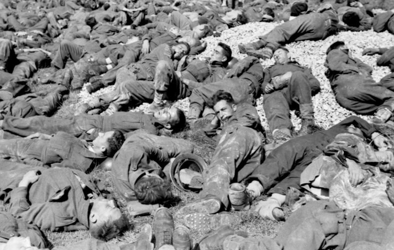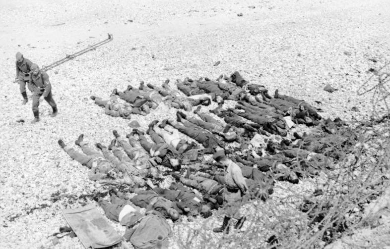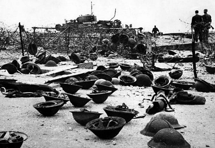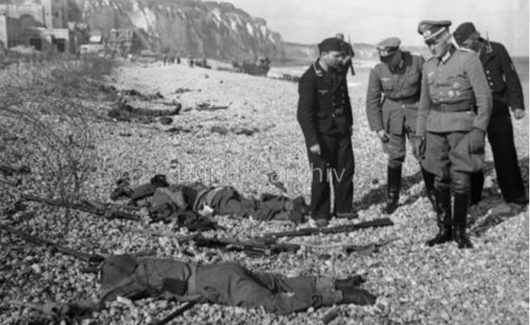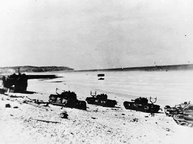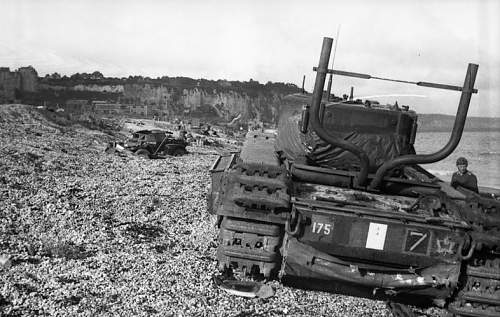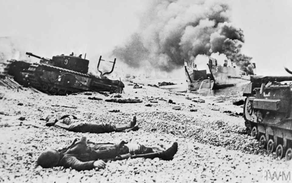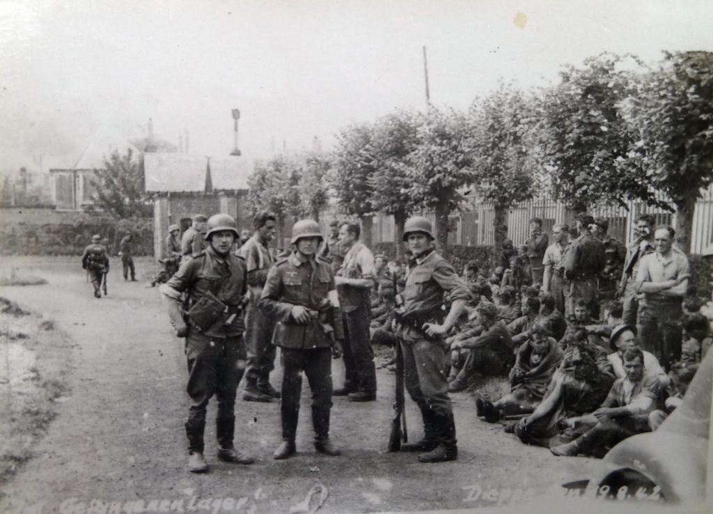 Canadian infantrymen disembarking from a landing craft during a training exercise before Operation JUBILEE, the raid on Dieppe, France. England, August 1942.Brigadier W. Basil Wedd of Headquarters, 1st Canadian Army, placing a wreath on the graves of Canadian soldiers killed at Dieppe on 19 August 1942. Ambleteuse, France, 23 September 1944.British commandos who took part in Operation JUBILEE, the raid on Dieppe, returning to England, 19 August 1942.The carnage of the Dieppe Raid, 19 August 1942The aftermath of the Dieppe Raid, 19 August 1942German soldiers inspect “Bert”, a knocked-out Canadian Churchill tank at Dieppe, August 1942German soldiers walk past “Bert”, a knocked-out Canadian Churchill tank at Dieppe, August 1942German soldiers examine Churchill tanks abandoned by Allied soldiers as they were evacuated.19 August 1942Churchill Tanks and landing craft burning on the beach after the Allied raid on Dieppe. 19 August 1942.Burnt out tanks and landing craft lie strewn across the beach at Dieppe after the Allied withdrawal. Of the 24 landing craft which took part, 10 managed to land a total of 24 tanks, all of which were lost.Damaged Churchill tanks of the Calgary Regiment on the main beach at Dieppe. 19 August 1942German troops examining “Churchill” tank of the Calgary Regiment abandoned during the raid on Dieppe. 19 August 1942Knocked out “Churchill” tanks and the bodies of Canadian soldiers on the beach of Dieppe. France, August 1942A Churchill Mark I of the Calgary Regiment’s “C” Squadron Headquarters knocked out at Dieppe. 19 August 1942A Churchill Mark I of the Calgary Regiment’s “B” Squadron Headquarters knocked out at Dieppe. 19 August 1942A knocked out Churchill Mark II of Regimental Headquarters, The Calgary Regiment at Dieppe. August 1942A Churchill Mark III of 10 Troop “B” Squadron, The Calgary Regiment, on the beach at Dieppe. 19 Aug 1942A Churchill Mark III of 10 Troop “B” Squadron, The Calgary Regiment, immobilized on the beach at Dieppe.19 Aug 1942A Churchill Mark III of 6 Troop “B” Squadron, The Calgary Regiment, immobilized with her left track broken by enemy fire on the Promenade at Dieppe.“The Dieppe Raid” by Charles ComfortCanadian POWs Being Marched Into CaptivityCanadian POWs At The Dieppe HospitalAfter the BattleThe beach after the battle.Canadian dead on Blue beach at Puys. Trapped between the beach and high sea wall (fortified with barbed wire), they made easy enfilade targets for MG34 machine guns in a German bunker. The bunker firing slit is visible in the distance, just above the German soldier’s head.No.3 Commando returning to Newhaven after the Dieppe Raid, August 1942Dieppe’s chert beach and cliff immediately following the raid on 19 August 1942. A Dingo Scout Car has been abandoned.A German MG34 medium machine gun emplacement. Dieppe, France. August 1942.Destroyed landing craft on fire with Canadian dead on the beach. A concrete gun emplacement on the right covers the whole beach. The steep gradient can clearly be judged.Canadian wounded and abandoned Churchill tanks after the raid. A landing craft is on fire in the background.Daimler Dingo armoured car and two Churchill tanks bogged down on the shingle beach. The nearest Churchill tank has a flame thrower mounted in the hull, and the rear tank has lost a track. Both have attachments to heighten their exhausts for wading through the surf.Canadian dead at Dieppe, August 1942Canadian prisoners being led away through Dieppe after the raid.British and Canadian prisoners at Dieppe, August 1942Canadian and British dead at Dieppe, August 1942German soldiers examine a Canadian Churchill tank at DieppeA member of the German Navy poses with a Canadian machete next to a disabled Allied Churchill tank on the beaches of Dieppe after the Dieppe Raid.Map of Dieppe Raid with photographic detailsGerman officers on the beach with fallen Canadian soldiers after the Dieppe Raid, 19 August 1942German soldiers attempting to salvage destroyed Canadian tank. August 1942.Canadian POW drinking from his helmet after the Dieppe Raid. 19 August 1942An aerial photograph of Dieppe during the landings showing a substantial fire burning on the frontAwaiting transhipment to prisoner of war camps after the Dieppe raid. 19 August 1942Awaiting transhipment to prisoner of war camps after the Dieppe raid. 19 August 1942Captured soldiers being marched through Dieppe. 19 August 1942The beach at Dieppe after the raid. 19 August 1942German personnel surveying an abandoned Allied tank. 19 August 1942An Allied soldier after the Dieppe Raid. August 1942.The beach the day after the Dieppe Raid. 20 August 1942Germans guarding the Canadian prisoners after the Battle of Dieppe. August 1942At Pourville, outside Dieppe, wounded Canadians lie at the side of the road as the battle continues in the background. 19 August 1942Exhausted Canadian soldiers await transport under the watchful eye of their German captors after the battle of Dieppe. Aug 1942A Dornier Do 217 being downed by a Supermarine Spitfire Mark VB flown by Flight Lieutenant Kazimierz Rutkowski of No. 317 Polish Fighter Squadron during the Dieppe Raid.The aftermath of the Dieppe Raid. 19 August 1942The aftermath of the Dieppe Raid. 19 August 1942Damaged Churchill tanks of the Calgary Regiment on the main beach at Dieppe. 19 August 1942Canadians taken prisoner after surrender at Dieppe. 19 August 1942.Evacuation of wounded.Allied troops arriving back in England after the Dieppe Raid.Weary soldiers back in England after the Dieppe Raid.Captain Jock Anderson of the Royal Regiment of Canada, cup of tea in hand, recounts his experiences to Brigadier Tees after disembarking at Portsmouth.A wounded Canadian soldier being disembarked from a Polish destroyer at Portsmouth on return from Dieppe, 19 August 1942.Three Canadian soldiers gather around their supplies in the shelter of the sea wall at Dieppe.19 August 1942Canadian troops resting on board a dest
