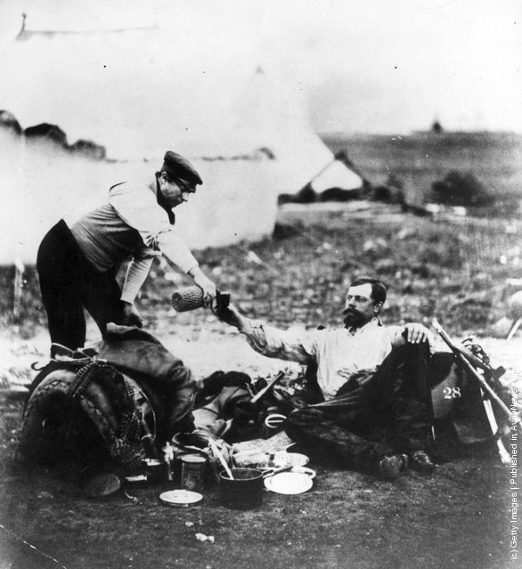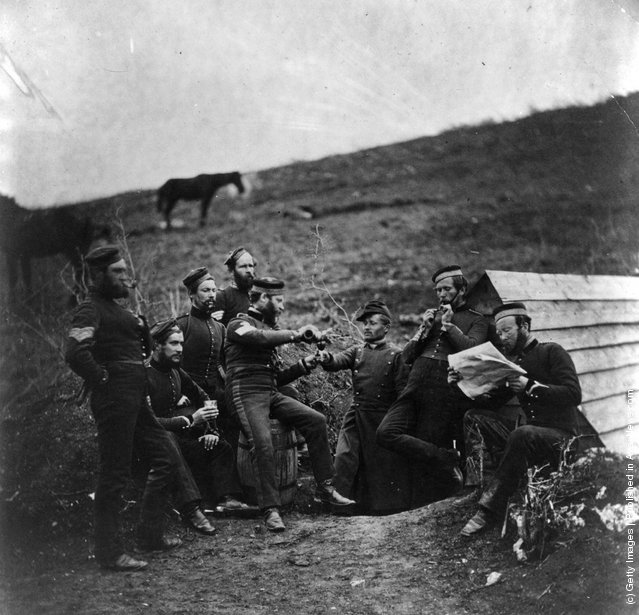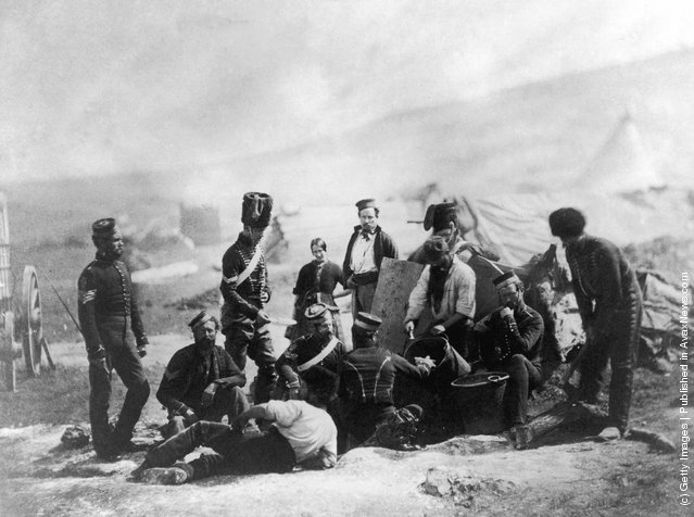 A vivandiere, a female soldier selling provisions and spirits, with the Allied forces during the Crimean War.Colonel Shadforth and the 57th Regiment during the Crimean War.English and French soldiers having a drink together in the lines before Sebastopol during the Crimean War.Mortar teams having a rest during the siege of Sebastopol in the Crimean War.Balaklava, Ukraine, looking seaward with the harbour crowded with sailing ships. Balaklava was the British headquarters during the Crimean war.Officers on the staff of Lt General Sir G Brown during the Crimean campaign.Officers of the 89th Regiment, Princess Victoria’s Royal Irish Fusiliers, at Cathcart’s Hill in the Crimea.General Pierre Bosquet (1810 – 1861), French military commander during the Crimean War. Witnessing the British charge of the Light Brigade at the battle of Balaklava, he remarked “C’est magnifique, mais ce n’est pas la guerre” (It’s magnificent, but it is not war’).8th Hussars soldiers preparing a meal at the Cookhouse in the field during the Crimean War, 1855.The interior of a redan, Russian fortifications at Sebastopol, after evacuation by the Russians following its fall to British and French troops during the Crimean War.English war photographer Roger Fenton (1819 – 1869) in the uniform of a Zouave soldier.British soldiers during the Crimean War.Captain Brown, Colonel Lowe and Captain George in their camp during the Crimean War.The War Council’s commanders-in-chief of the Allies, Lord Raglan, Omar Pasha and General Pelisier having a meeting during the Crimean war.English nursing reformer Florence Nightingale (1820 – 1910), who became the first woman to receive the Order of Merit for her tireless efforts during the Crimean War.A mobile darkroom used by photographer Roger Fenton during the Crimean war, where he developed negatives within 10 minutes of their exposure.Sir William Howard Russell (1820 – 1907), war correspondent of “The Times”.Lieutenant Colonel Halliwell being poured a drink at an army camp in Russia, during the Crimean War.Captain Brown of the 4th Light Dragoons, seated, and his servant in winter dress, in Russia, during the Crimean War.The British 4th Light Dragoons encamped in the Crimea, 1855.Members of the 4th Light Dragoons at camp in the Crimea, 1855.A soldier and two woman pose next to a row of cannon during the Crimean War, 1855.A British cannon being loaded onto a shop at Sevastopol, 1855.Mortar batteries in front of Picquet House, Light Division, during the Crimean War, circa 1855. The British soldiers are positioned behind a berm, or raised earth fortification.