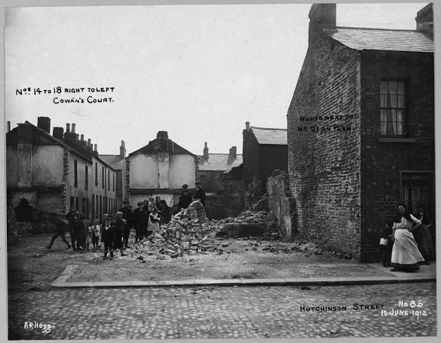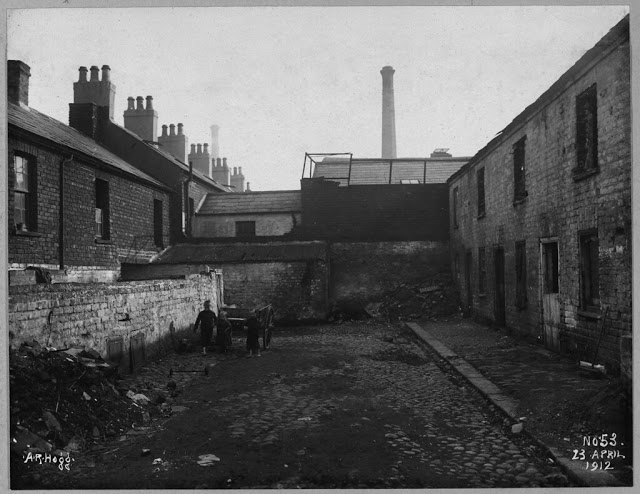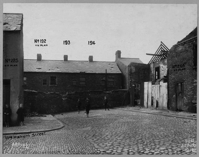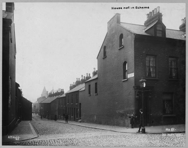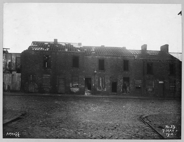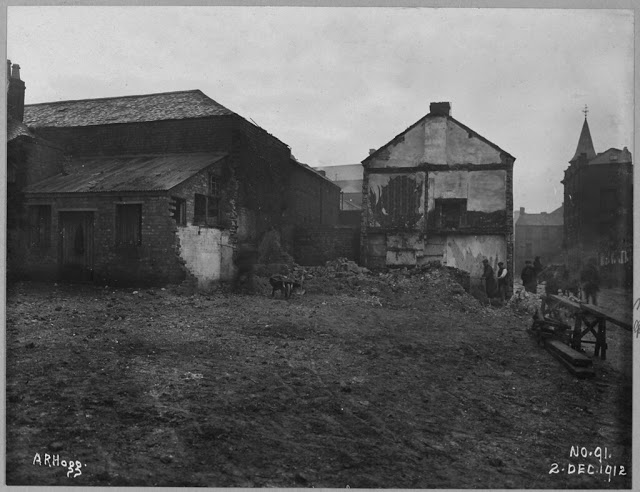 These photographs come from the Belfast Corporation archive and were taken by Alexander Hogg (1870–1939). The photographs show various properties, mainly older houses, to be demolished or otherwise affected by improvement schemes undertaken by the Corporation under the Belfast Improvement Order (1910) and the Belfast Corporation Act (1911).