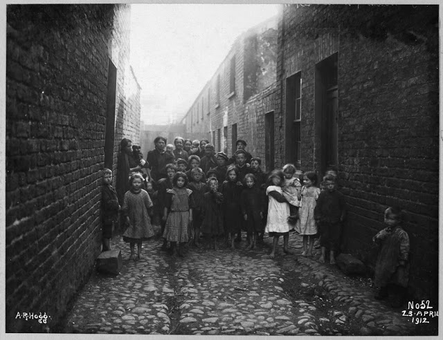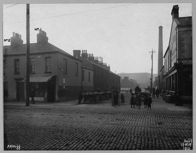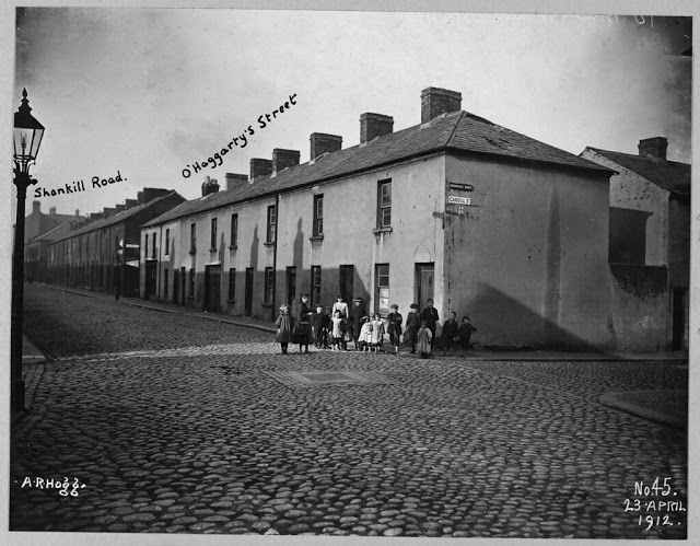 Although focused on the properties, the photographs contain an interesting record of street life in Belfast, including inner city areas, the suburbs and the commercial centre, before and in the early years of the Great War. Most include people, particularly children, generally arranged in groups in the foreground of the scene. They also give a vivid impression of the quality of the housing stock in these areas.