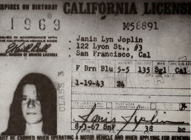 Johnny Cash’s California driver’s license issued in 1964.Robert De Niro’s taxicab licence from 1976.California driver’s license allegedly issued to Charles Manson in 1967.California driver’s license for one Alfred Joseph Hitchcock, which was sold for at auction back in 2008 for a mere $8,000.California driver’s license issued to Dean Paul Martin in 1967.James Brown has the cheeriest driver’s license photo ever!Janis Joplin’s driver’s license.Davy Jones of the Monkees.Steven Tyler of Aerosmith (aka Steven Tallarico) and his diver’s—not drivers, diver’s—license issued in Hawaii in 1987.A young Michael Jackson’s Malibu Grand Prix Racing license.Rue McClanahan the actress who played badass Blanche Devereaux on the television series ‘The Golden Girls.’When you are Jacqueline Kennedy, you don’t need to list your weight on your driver’s license…Liberace! This one was sold in an auction in 1988 for $4,188.A 1934 driver’s license issued to Francis Sinatra, before he got his first big break in the music industry.The Last Driver’s License of John Wayne, 1977. Issued by the State of California on “May 12, 1977.”Jim Morrison’s driver license