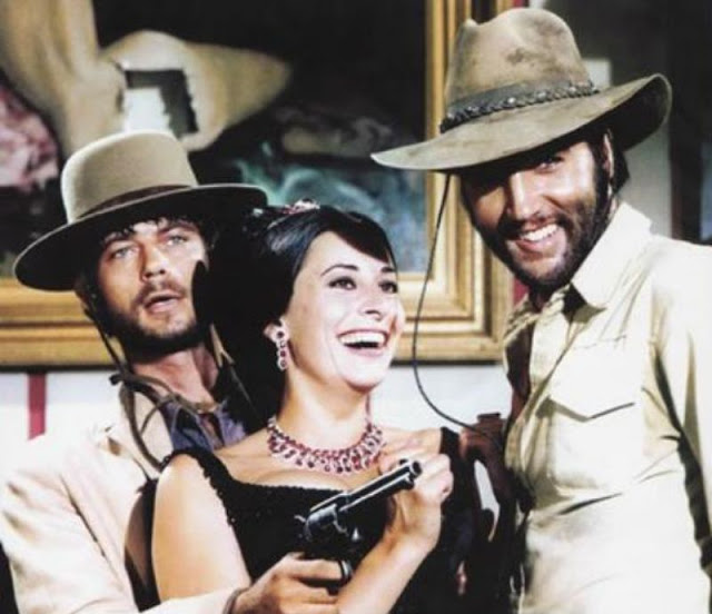 With its gritty look, violent antihero, and cynical point of view, Charro! was obviously patterned after the grim Italian westerns of the 1960s. Elvis’ character, Jess Wade, is costumed similarly to Clint Eastwood’s notorious Man with No Name from Sergio Leone’s Italian westerns.