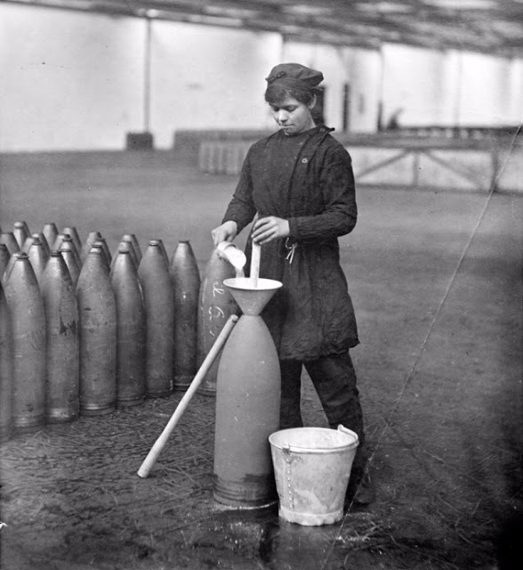 Munition factories were one of the main sites where man (or woman) power was needed. These production facilities dealt mainly with trinitrotoluene (TNT), a toxic chemical compound that was originally used as a yellow die before its potential as an explosive was discovered.