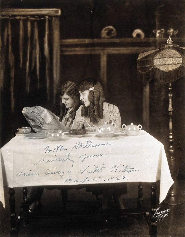 Born in Brighton, England on 5 February 1908, the twins were unofficially adopted by their biological mother’s midwife, Mary Hilton, when the mother rejected the children. From the time that they were infants, they were exhibited at fairs and circuses by Hilton and her daughter.
