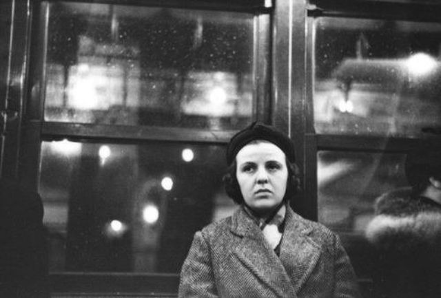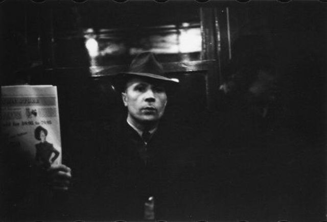 As photographic technology advanced—cameras became more portable and film more sensitive to light, requiring shorter exposure times—people were no longer required to stay still for pictures. Walker Evans was among the photographers who capitalized on this flexibility. Between 1938 and 1941, he took his camera underground, where he photographed subway riders in New York City. “The guard is down and the mask is off,” he wrote, “even more than when in lone bedrooms (where there are mirrors). People’s faces are in naked repose down in the subway.”