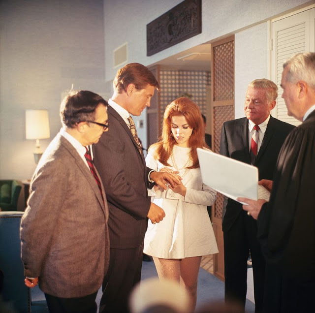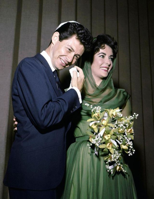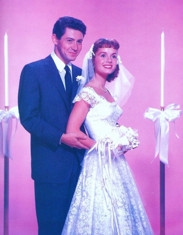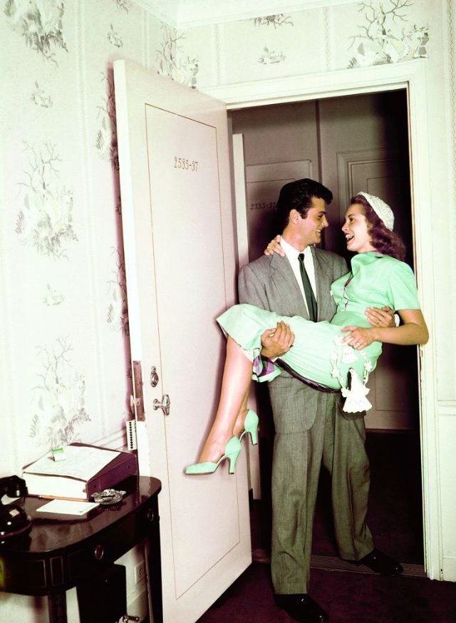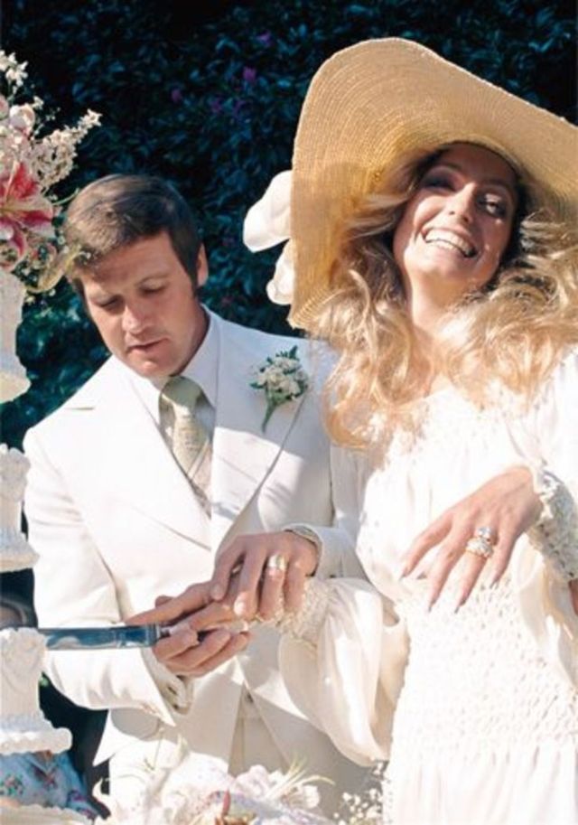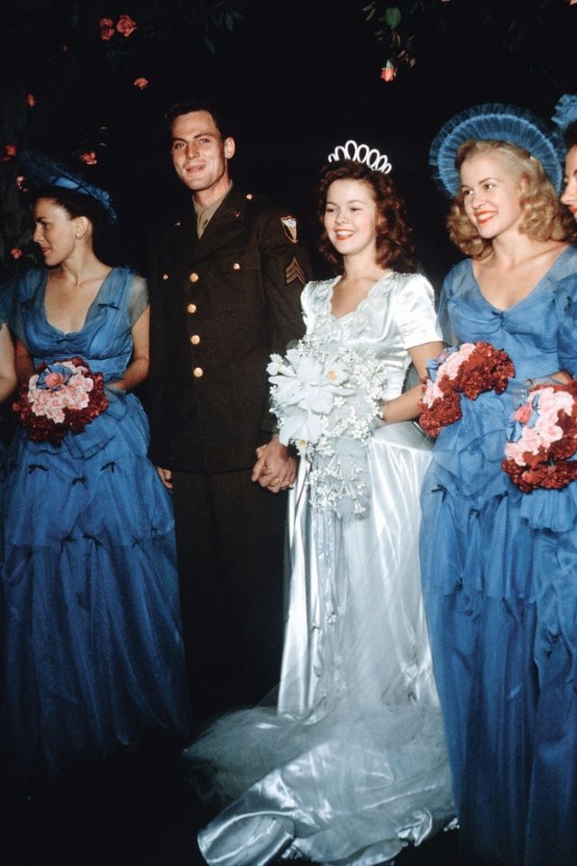 Hollywood starlet Linda Darnell was just 20 when she eloped in Las Vegas with 42 year-old Pev Marley in 1942Child actress Shirley Temple met Army Air Corps Sergeant John Agar when she was just 15 and married him in 1945 in a grand ceremony when she was 17Esther Williams and Ben Gage on their wedding day in 1945Tony Curtis carries new bride Janet Leigh over the threshhold, 4 June 1951Eddie Fisher and Debbie Reynolds on their wedding day, 1955Elizabeth Taylor chose a green silk hooded dress for her wedding to Eddie Fisher, on May 12 1959 in VegasActors Suzanne Pleshette and Troy Donahue married and divorced in 1964Sue Lyon and Hampton Francher on their wedding day, 1964Mia Farrow married Frank Sinatra in 1966Actors Ann-Margret and Roger Smith at their 1967 Las Vegas nuptialsActress and former Playboy Playmate Corinne Cole married first husband Sands Hotel President, Jack Entratter in Las Vegas in 1967Actress Kathy Kersh married actor Burt Ward, aka ‘Robin’ from TV’s Batman and Robin in 1967Priscilla Ann Beaulieu married Elvis Presley in 1967British entertainer Cilla Black married her manager Bobby Willis in a London civil ceremony in 1968Johnny and June Carter Cash’s wedding, 1968German-Swiss photographer, author, industrialist and famous playboy Gunter Sachs married third wife, former Swedish model Mirja Larsson in 19691968 Olympic Gold Medal Figure Skating Champion Peggy Fleming and Greg Jenkins married in 1970Stevie Wonder with first wife Motown singer and songwriter Syreeta Wright, 1970Tito and Delores Jackson wedding in June 1972Farrah Fawcett and Lee Majors on their wedding day in 1973Tipper and Al Gore on their wedding day, May 1975Muhammad Ali and Veronica Porsche on their wedding day in Los Angeles in the summer of 1977Jewelry designer, businesswoman, socialite, style icon daughter of Pablo Picasso, Paloma married Rafael Lopez-Cambil in 1978Kris Jenner and her first husband Robert Kardashian at their 1978 weddingKurt Russell & Season Hubley on their wedding day, 1979Ali married Bono in Dublin, Ireland in 1982Elton John wed German music engineer Renate Blauel in London on Valentines Day, 1984Julie Anne married Nick from Duran Duran in 1984Music icon Diana Ross married Norwegian billionaire shipping magnate Arne Næss, Jr. in 1985Gospel and R&B singer Shirley Murdock married husband Dale DeGroat in Dayton, Ohio, 1988Isabella and Detmar Blow at their 1988 weddingRita Wilson wed Tom Hanks in 1988Robert Smith of the Cure and his long-time love Mary Poole married in 1988Basketball legend and HIV/AIDS activist Magic Johnson wed Earlitha ‘Cookie’ Kelly at a small (by celebrity standards) wedding in Lansing, Michigan in 1991Courtney Love and Kurt Cobain married in 1992 on a beach in Hawaii days after finding out she was pregnant with their daughter Frances BeanDavid Bowie and Iman married in April 1992Actress Julia Roberts wed country crooner Lyle Lovett in a small service in Marion, Indiana, 1993