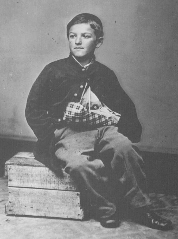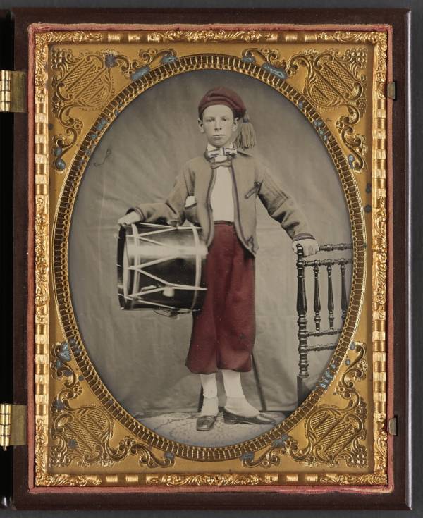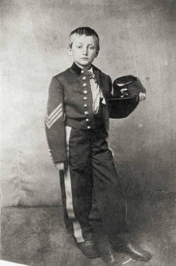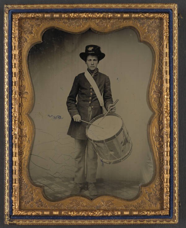 A “powder monkey” aboard the U.S.S. New Hampshire. Charleston, South Carolina. 1864Little Johnny Clem became the youngest soldier in the Union Army to kill a man when he put down his drum, grabbed a rifle, and shot a Confederate officer. Circa 1863-1865.Three drummer boys in the Confederate army. By the time this picture had been taken, these boys were veterans of nine battles. Circa 1861-1865.This photo, labelled “Captain Goodrich’s Jack” on the back, appears to show the African-American servant of an army officer. Circa 1861-1865.A 15-year-old Confederate child soldier lies dead in the trenches at Fort Mahone. Petersburg, Virginia. 1865.A group of Generals in the Union Army pose for a photo with an African-American servant boy. Cumberland Landing, Virginia. 1862.Major Luzerne Todd poses for a photograph with his African-American child servant. Arlington Grounds, Virginia. 1861.The crew of a frigate poses in front of a cannon. The boy sitting on top serves as a powder monkey, gathering gunpowder and bringing it to the cannons. Circa 1861-1865.A young African-American boy stands next to a Union Officer. He is most likely working as the officer’s servant. Circa 1861-1865A young Union drummer. Circa 1861-1865.A Union drummer boy in uniform. Circa 1861-1865.Johnny Clem in uniform, with the stripes showing off his officer’s rank. Circa 1863-1865.A portrait of a young boy in a Confederate uniform. Circa 1861-1865.William Black, the youngest soldier to injured in active duty, was 12 years old when his arm was hit by an exploding shell. Circa 1861-1865.An African-American child poses in front of a painted backdrop in the clothing of an army servant. Circa 1861-1865.Soldiers at Camp Cameron, including a young African-American servant boy. Washington, D.C. 1861-1865.Drummer boy Johnny Jacobs in his Union Army uniform. Circa 1861-1865.A child at a military camp leans against a wooden barrel with spikes. Circa 1862-1863.A young drummer boy, his cheeks made rosy to emphasize his youth, poses with his drum. Circa 1861-1865.Nathan Jones, an African-American servant boy, serving at Camp Metcalf. Virginia. Circa 1861-1865.Johnny Clem, the youngest soldier in the Union Army. At the time of this photo, he was 12 years old. 1863.Jimmy Doyle, a drummer boy who was wounded in combat. New Haven, Connecticut. 1863.A child in the uniform of the Washington Rifles. Circa 1861-1865.A Union drummer boy in uniform, holding his drum. Circa 1861-1865.Johnny Clem would survive the war, despite being captured and held prisoner by Confederate soldiers. He would even stay in the American Army after the war. When he left the service in 1915, he was a General and the last Civil War soldier still in the army. 1865.A Union child soldier poses with his rifle. Circa 1861-1865.A drummer boy named Jackson poses for a portrait during the Civil War. Jackson is believed to be a freed or escaped slave who joined the 79th Infantry Regiment – U.S. Colored Troops, an all-black unit assigned to Kansas and Arkansas during the war that incurred heavy casualties. As a drummer, Jackson would have used up to 40 different beats to convey his commanders orders to assemble for formation, head to chow, line up for pay or charge into battle. Many drummer boys also served as stretcher bearers. Edwin Jemison of Monroe, Louisiana enlisted in the Confederate Army at the age of 16 in 1861. He served in the 2nd Louisiana Volunteer Infantry Regiment and participated in the Peninsula Campaign and the Seven Days Battles in 1862. Jemison would die during the Battle of Malvern Hill.John Cook enlisted in the Union Army in Cincinnati, Ohio as a bugler for the 4th U.S Artillery at the age of 14. He would fight at Antietam and Gettysburg and would be awarded the Medal of Honor for his heroism.Charlie King was enlisted into the 49th Pennsylvania at age 12 after a company captain heard him practicing his drum near the military camp. During the Battle of Antietam on September 17th, 1862 King would die becoming the youngest known casualty of the Civil War on either side of the conflict.Orion P. Howe enlisted at the age of 12 in the 55th Illinois Volunteer Infantry as a musician along with his brother, Lyston. During the Battle of Vicksburg on May 19th, 1863, Howe, severely wounded & would eventually be awarded the Medal of Honor for his actions at Vicksburg.At age 14 Susie King Taylor married Edward King, a black officer in the 33rd United States Colored Infantry Regiment, and served as a nurse, laundress, and taught reading and writing to soldiers in his regiment until the end of the war.Edward (William) Black (1853–1872) was a drummer boy for the Union during the American Civil War. At twelve years old, his left hand and arm were shattered by an exploding shell. He is considered to be the youngest wounded soldier of the war.Rashio Crane was a 15-year-old drummer with Company D 7th Wisconsin. He was captured May 5, 1864 at the Wilderness while helping a wounded comrade. Sent to Andersonville Prison, he took sick and died July 23, 1864.Benjamin Knox was a 15-year-old private in Company H 20th Ohio, from Vicksburg to the Atlanta Campaign. He was shot in the trenches at Atlanta and died a short time later in the company quarters.Ten-year-old Willie Lawn was wounded near Suffolk, Virginia, April 23, 1863. He lost part of his right arm.Robert Henry Hendershot, known as the Drummer Boy of the Rappahannock, was an American Civil War drummer boy known for his reputed heroics at the Battle of Fredericksburg, Virginia, in December 1862.Drummers of the 61st New York Infantry, March 1863.This young Virginian, William Nelson Boswell entered the Confederate service at eleven years of age as a drummer in the 56th Virginia. His soldierly bearing on drill so attracted the attention of President Davis that with his own hands presented the little drummer with a sword.Gustav Schurmann, Twelve-year-old who served in the Civil War as bugler and orderly to Generals Phil