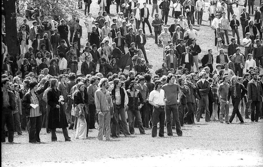 On May 1, 500 students filled the Kent State campus, where they marched and made speeches that terrified some of the people around them. One pulled out a copy of the United States Constitution and burned it, trying to demonstrate how Nixon had violated it – but some didn’t quite understand. Some saw the protestors as a danger.