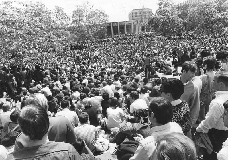 The students were calling for peace. They were protesters demonstrating against the Vietnam War and against America’s intention to move into Cambodia. Too many soldiers had died — the protesters thought — many of them students whose names had come up in the draft lottery. The students wanted the killings to stop.