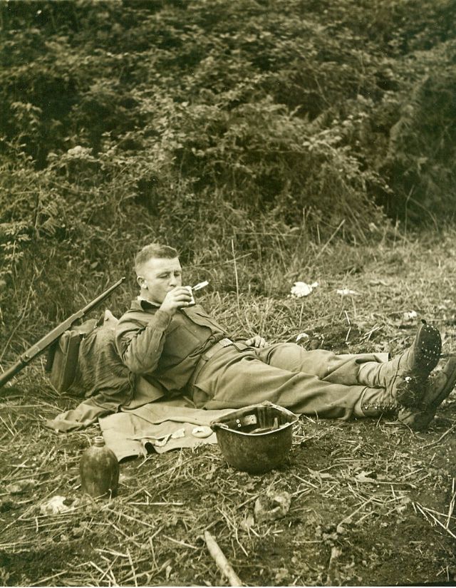 A collection of emotional pictures from MacArthur Museum that shows rare private moments of soldiers resting during the World War II.