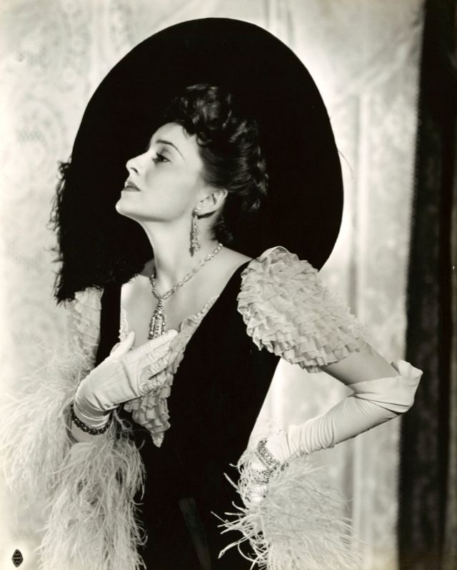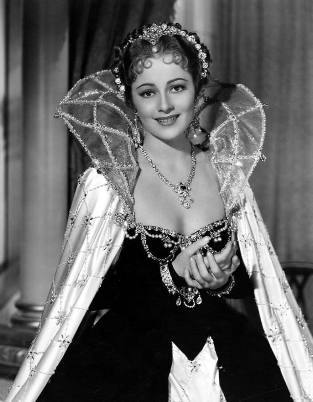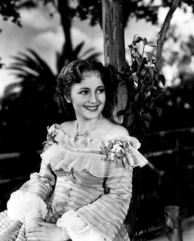 De Havilland first came to prominence with Errol Flynn as a screen couple in adventure films such as Captain Blood (1935) and The Adventures of Robin Hood (1938). One of her best-known roles is that of Melanie Hamilton in Gone with the Wind (1939), for which she received her first of five Oscar nominations, the only one for Best Supporting Actress. De Havilland departed from ingénue roles in the 1940s and later distinguished herself for performances in Hold Back the Dawn (1941), To Each His Own (1946), The Snake Pit (1948), and The Heiress (1949), receiving nominations for Best Actress for each and winning for To Each His Own and The Heiress. She was also successful in work on stage and television. De Havilland lived in Paris from the 1950s and received honors such as the National Medal of the Arts, the Légion d’honneur, and the appointment to Dame Commander of the Order of the British Empire.