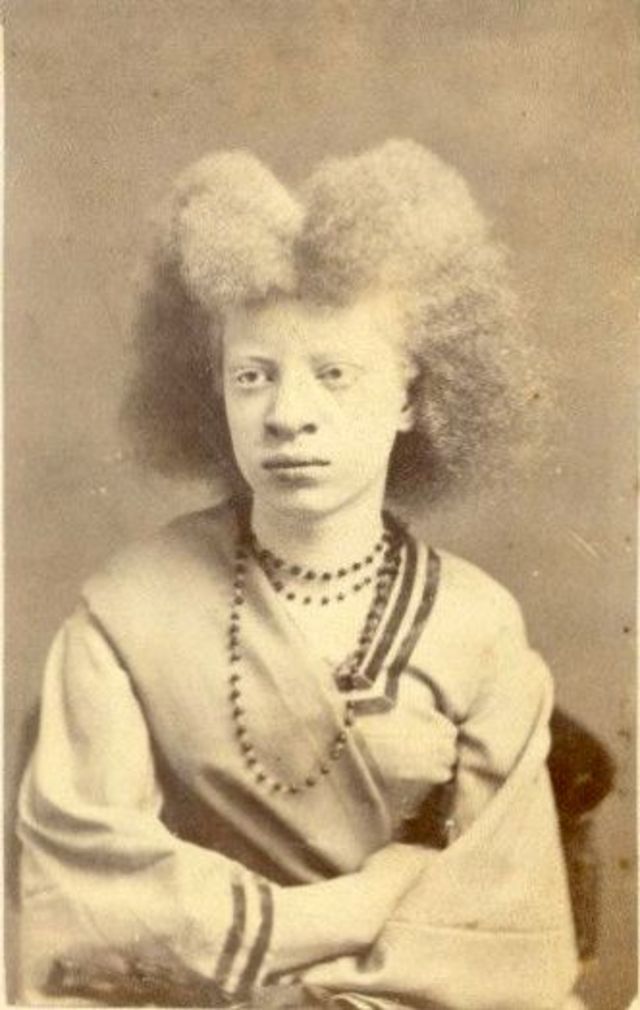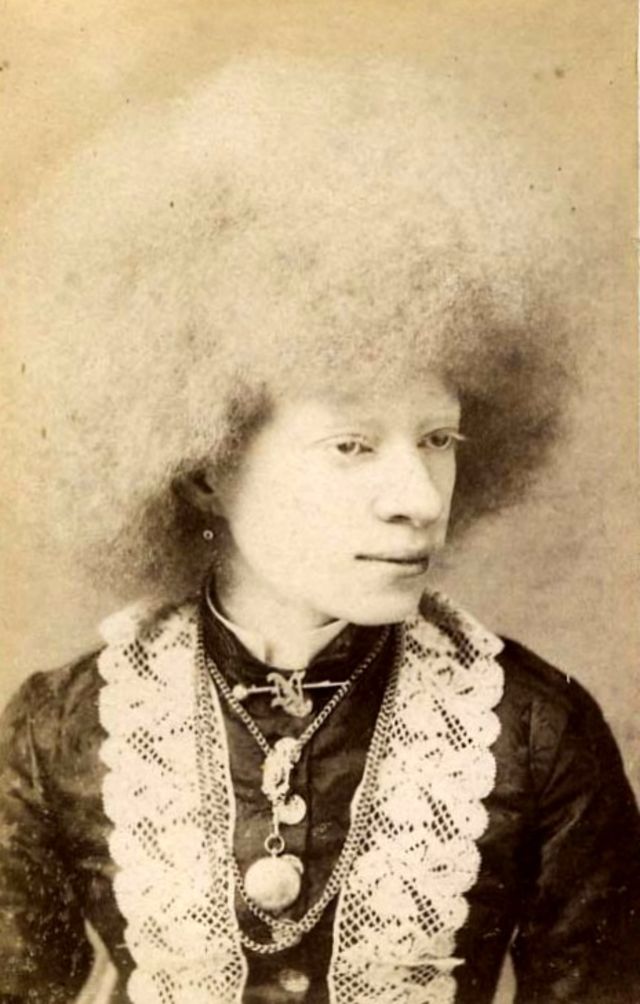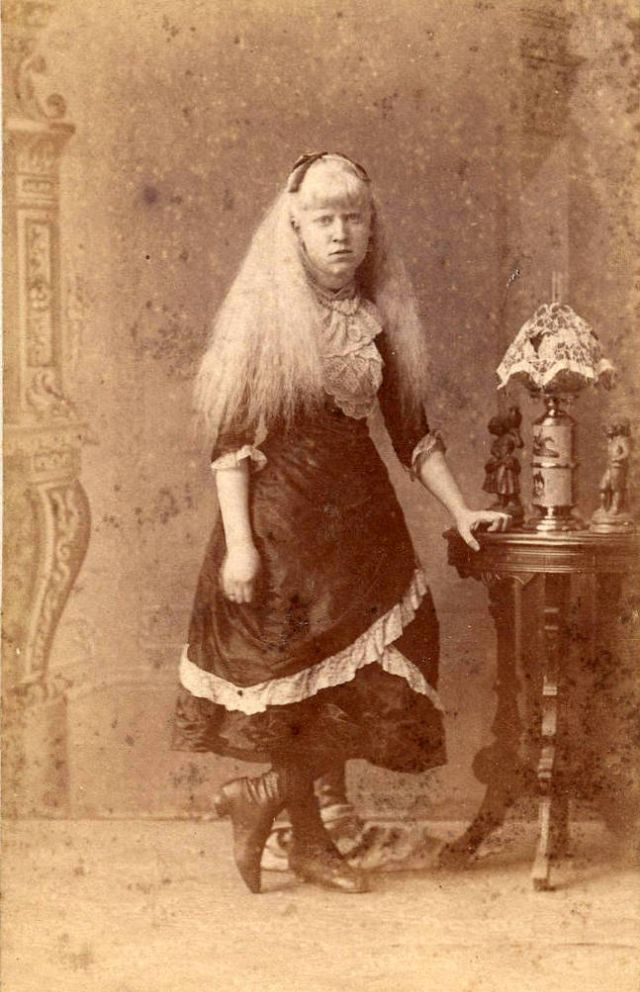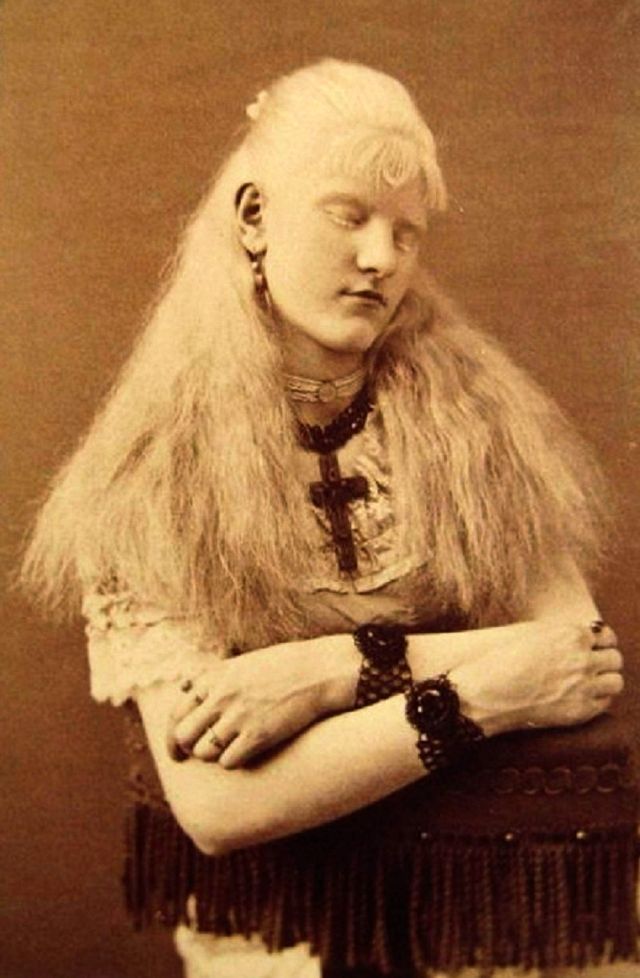 A beautiful photo collection that show albino girls named Nellie Walker, Millie Lammar in the 1870s, albino performer and Circassian beauty Aggie Zolidra, Aggie Zolutia in the 1880s, and some other beautiful girls.