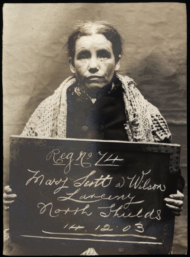 Alice Caush arrested for larceny, 31st October 1903Annie Anderson arrested for alleged theft of a watch, 25th August 1903Catherine Buck arrested for stealing sheets, 3 February 1905Catherine Mackenzie arrested for larceny, 15th February 1904Catherine O’Brien arrested on 11th November 1903Charlotte Branney arrested for larceny, 5th January 1904Isabella Scott arrested for larceny, 27 September 1904Jane Forbes arrested for larceny, 26th January 1905Jane Thompson, alias Gordon, arrested for stealing a pair of boots, 13th July 1904Kate Stobbs arrested for stealing from her landlady, 11th June 1903Mabel Smith arrested for larceny, 28th September 1903Mary A. Butts arrested for larceny, 20th December 1904Mary Johnson arrested for larceny, 8 August 1904Mary Scott, alias Wilson, arrested for stealing clothes, 14th December 1903Nora Jane McCartney, alias Marcella Turnbull, alias Bulman, arrested for larceny, 4 April 1905Sarah Patterson arrested for trying to steal money from a gas meter, 14th March 1904Susannah Adamson arrested for stealing a man’s purse, 15th February 1904
