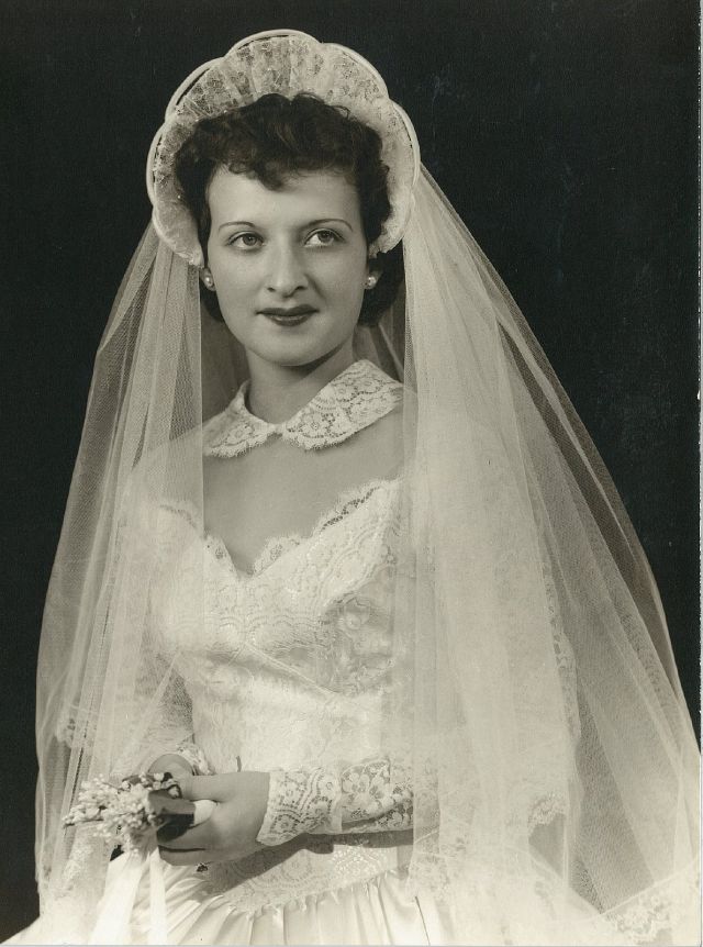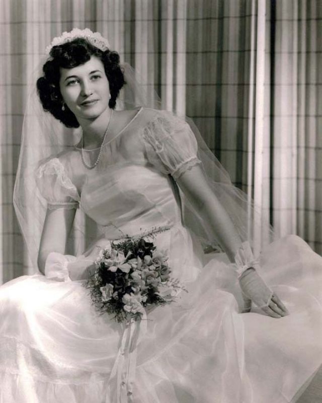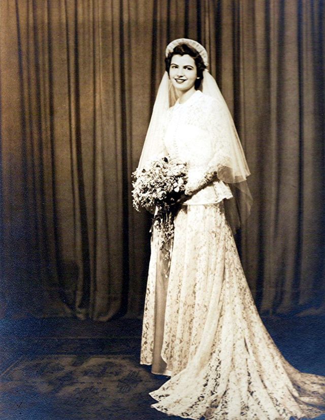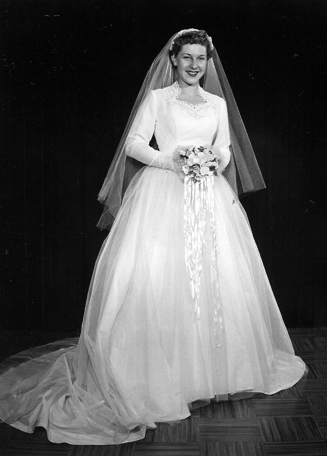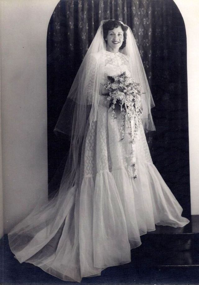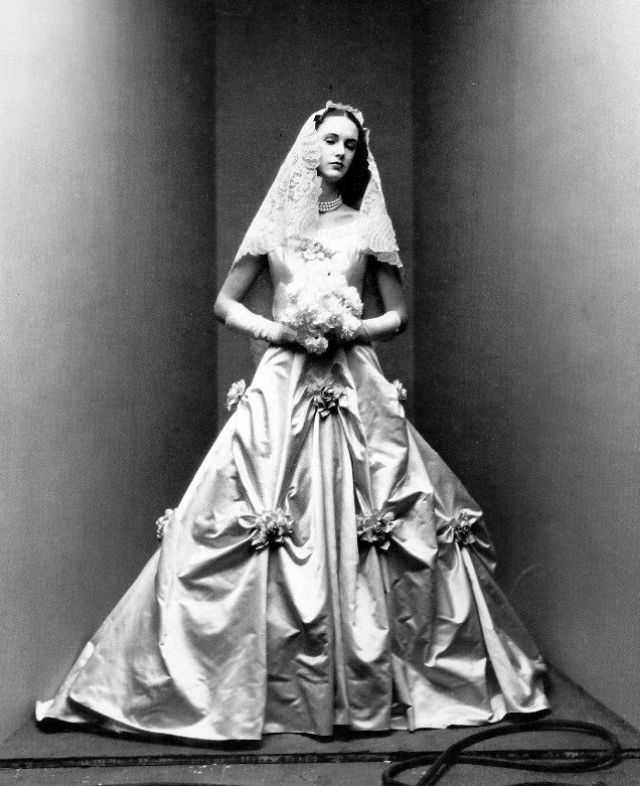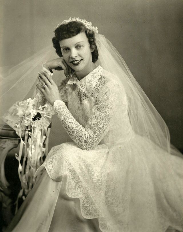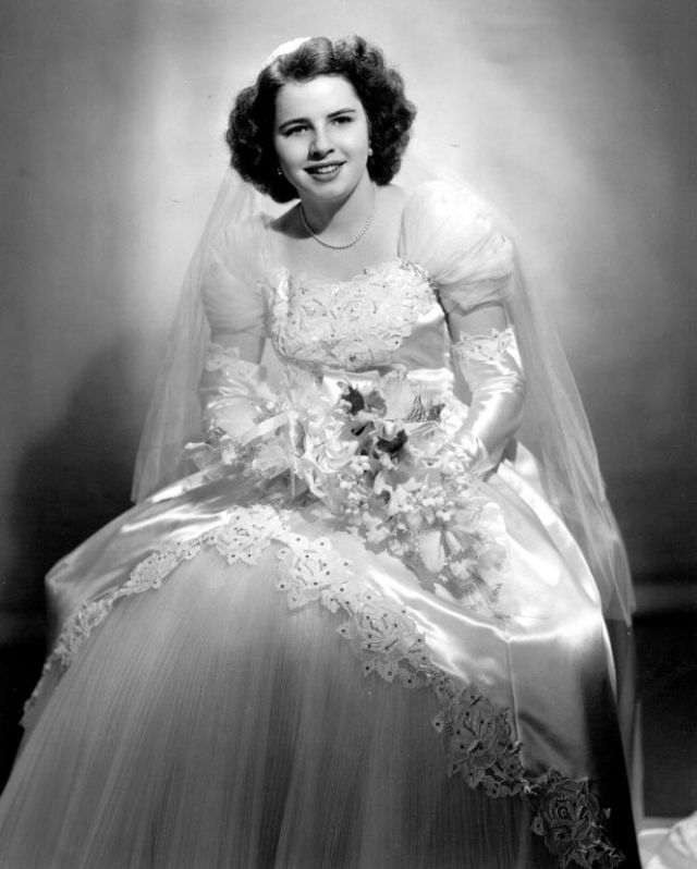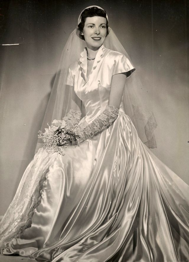 After the shortages of World War II, women were ready for a little luxury. And brides didn’t want to skimp on the lace or fabric.