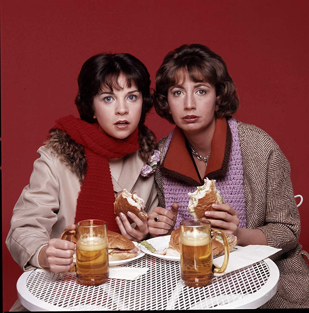 She then married Rob Reiner on April 10, 1971, shortly after getting her big television break as Oscar Madison’s secretary, Myrna Turner, on The Odd Couple (1970). She also played Mary Richards’ neighbor, Paula Kovacks, on Mary Tyler Moore (1970) for a couple of episodes. However, her Laverne & Shirley (1976) fame came when her brother needed two women to play “fast girls” who were friends of Arthur Fonzarelli and would date Fonzie and Richie Cunningham on Happy Days (1974). Penny had been working on miscellaneous writing projects (“My Country Tis Of Thee”, a bicentennial spoof for Francis Ford Coppola and “Paper Hands” about the Salem Witch Trials) with writing partner Cindy Williams. Cindy happened to be a friend and ex-girlfriend of Henry Winkler’s, so Garry asked the two to play the parts of these girls. The audience saw their wonderful chemistry, and loved them so much, a spin-off was created for them.