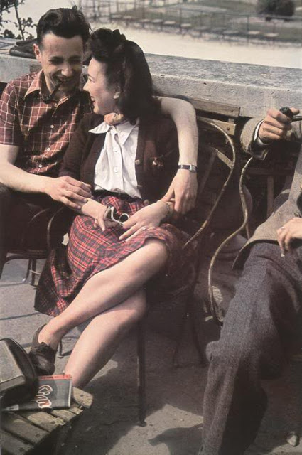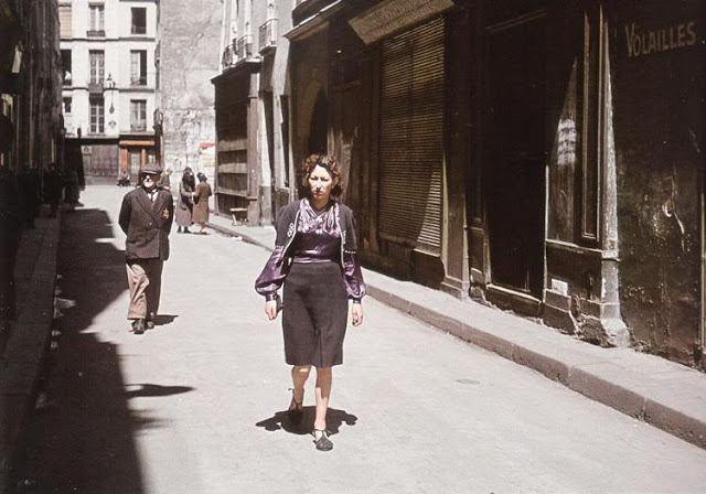 These photographs were taken by French photographer André Zucca from the early 1940s show Paris as sunny, airy, bursting with color. Its inhabitants appear carefree, content and refreshingly unaware of their proclivity for looking très chic. It’s all very much at odds with the prevailing image of the French capital suffering and smoldering under the yoke of its Nazi occupiers.