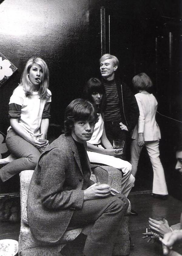 Mick Jagger hangs out with Andy Warhol in New York City.