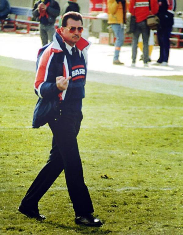 Chicago Bears coach Mike Ditka waves to reporters before a game.
