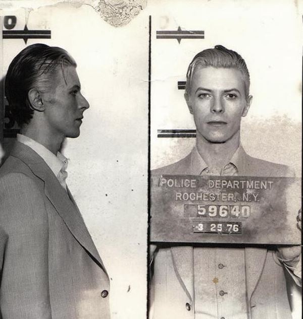 The mugshot of David Bowie after being arrested for marijuana possession in Rochester, New York in March 1976.