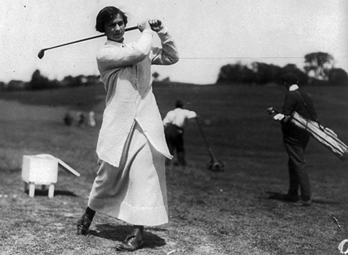 The first secure mention of women playing golf is at Bruntsfield Links in 1738 and the first reference to links golf is in 1811 at Musselburgh, though women’s golf societies were not formed until the last quarter of the 19th century. Then came an explosion of interest in women’s golf and golf clubs.