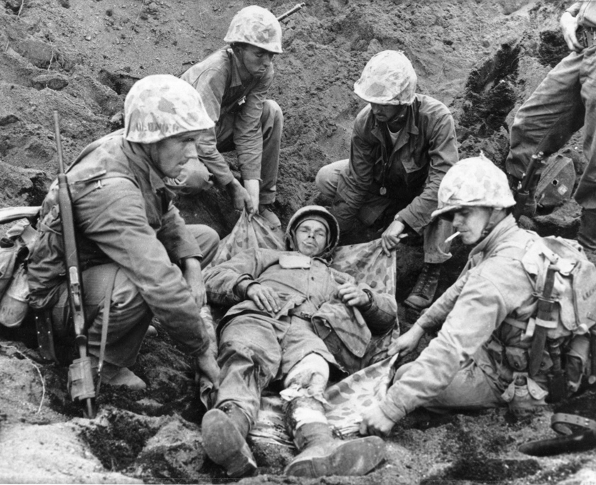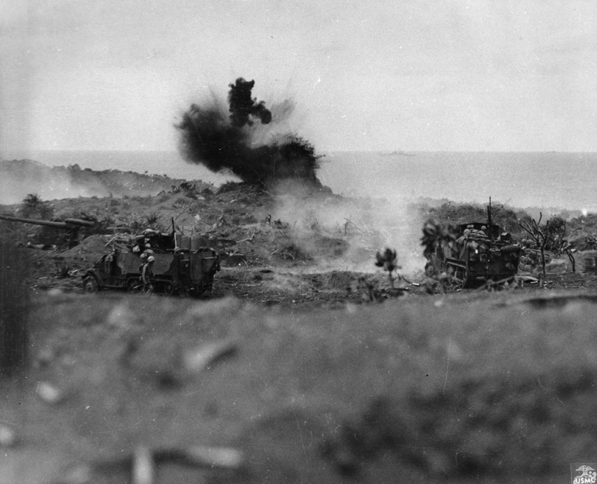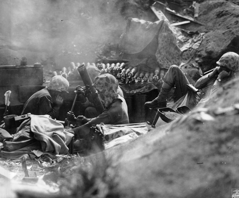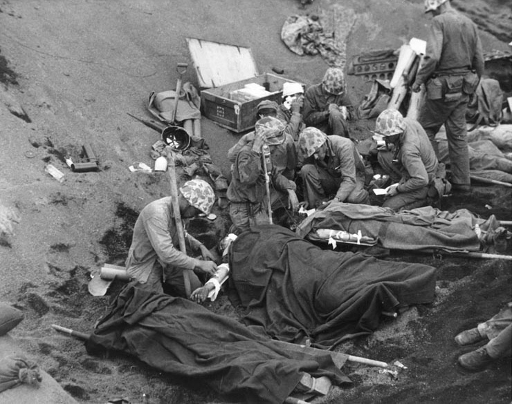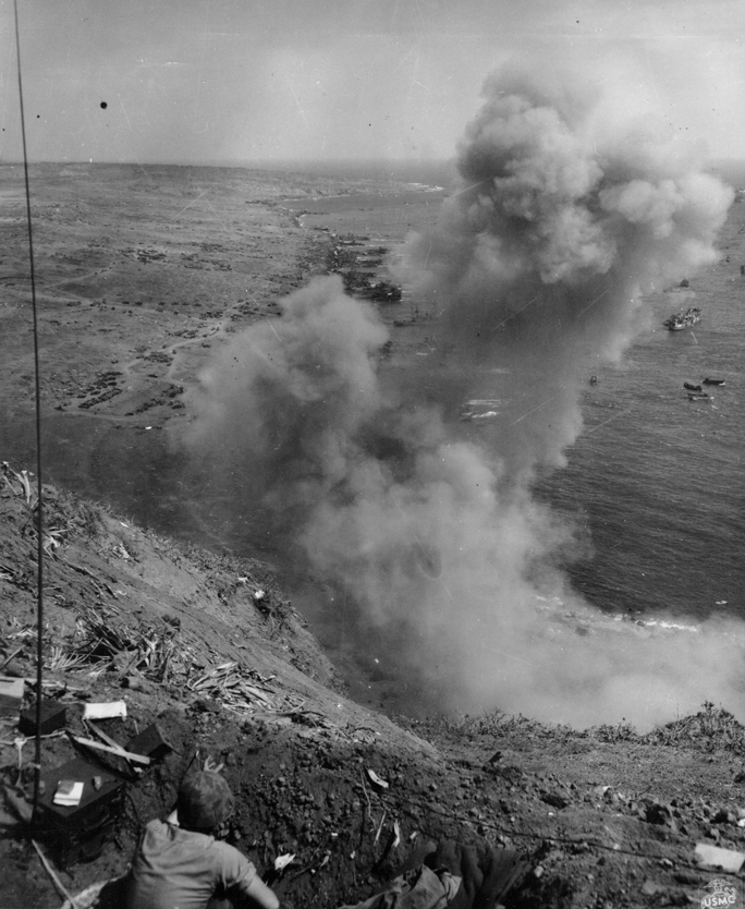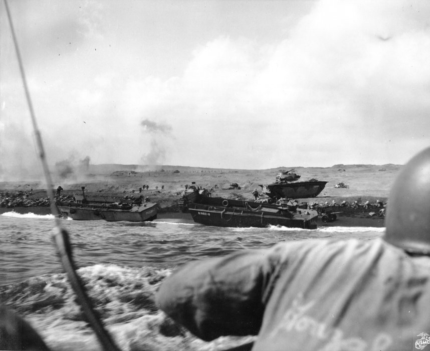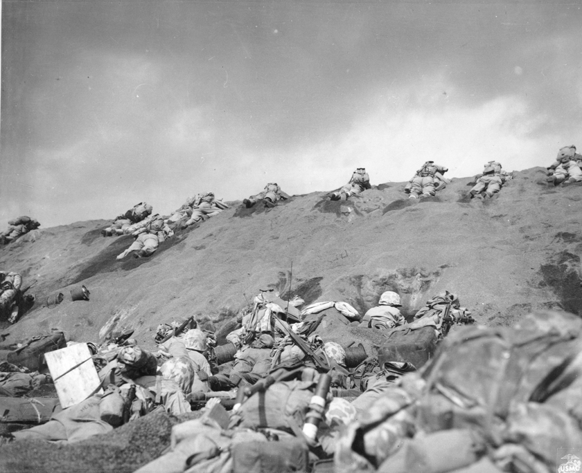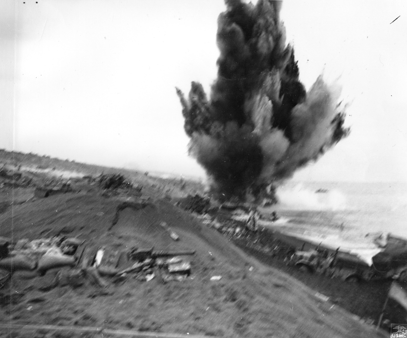 Iwo Jima February 19, 1945. A Marine machine gunner fires at Japanese positions in support of a Marine advance on Iwo Jima.The first wave of landing craft at Iwo Jima, 19 Feb 1945US Coast Guardsmen assisting a wounded Marine into an LCVP after the Marine’s LVT sustained a direct hit while heading to the landing beaches on Iwo Jima, Feb 18, 1945.Fifth Division Marines moving inland off the beach, after coming ashore on Iwo Jima, 19 Feb 1945Marines in a LCVP off Iwo Jima, 19 Feb 1945Marines crouched in a Coast Guard-manned LCVP on the way in on the first wave to hit the beach at Iwo Jima, 19 Feb 1945Men of the US 4th Marines rushing out of their landing craft for Iwo Jima landing beach, 19 Feb 1945Iwo Jima, February 22, 1945. Supplies: An LSM, (Landing Ship, Medium), drops it’s ramp almost clear of the water and Marines roll supplies ashore for the inland drive on Iwo Jima.Iwo Jima, February 24, 1945. Shelling Iwo: Section chief, Marine Private First Class R. F. Callahan calls for fire and another 155 mm shell is hurled into a Japanese position.Men of US Marine Corps 4th Division shelling Japanese positions from the beach, Iwo Jima, Feb 1945Men of US Marines, Second Battalion, Seventh Regiment waited to move inland on Iwo Jima, soon after going ashore, 19 Feb 1945Iwo Jima February 19, 1945. A wave of Marines is organized after reaching the Iwo beachhead and preparations are made for the push inland.Helldivers of Bombing Squadron VB-9 returning to the USS Lexington after a strike in support of the US Marines on Iwo Jima, Feb 1945.Iwo Jima February 1945. Riflemen lead the way as flame throwing Marines of the Fifth Division, crouched with the weight of their weapons, move up to work on a concentration of Japanese pillboxes.Iwo Jima February 1945. Supplies are unloaded from the vast fleet of ships offshore and ration dumps of the Third and Fourth Marine Divisions are established on the beach.Closeup of wreckage of Marine equipment and landing barges partly submerged in the soft volcanic sand of the beach of Iwo Jima. February 1945.Iwo Jima February 20, 1945. Marines burrow in the volcanic sand of the Iwo beach, as their comrades unload supplies and equipment from landing vessels despite the hail of fire from enemy positions on Mount Suribachi in the background.Iwo Jima February 19, 1945. Marine-laden assault craft head to the beach at Iwo Jima during the initial landings on D-day. Note Mount Suribachi looming in the left background.Iwo Jima February 19, 1945. Fourth Division Marines surge forward from the beach at Iwo Jima on D-day despite the hail of mortar and light artillery fire which the stubborn enemy defenders are raining down on the beachhead. Two attack waves are advancing up the barren slope toward the first airfield while a third assault line has just left the beach. Other waves await their turn and still more troops are headed shoreward in landing craft...Iwo Jima February 19, 1945. A wave of Marines is organized after reaching the Iwo beachhead and preparations are made for the push inland.Iwo Jima, February, 1945. Down Fifty: At a forward observation post, Marine spotters have located the exact fix on an enemy position as one of the group calls instructions to be relayed to artillery and mortar units requesting a concentration of fire on the Japanese strong point.Iwo Jima, February 1945. Cozy Spot: View of a Regimental command post in a sandbagged position near the front lines at Iwo Jima.Iwo Jima February 19, 1945. With enemy fire screaming overhead, Marines haul an ammunition cart on the beach at Iwo Jima on D-day.Iwo Jima, February 21, 1945. Burrowed in the Sand: A Marine medium tank that couldn’t navigate the soft volcanic sand on Iwo, is track deep in a pit off the beach. This loose sand of the island proved an asset to the Japanese defenders.Iwo Jima February 19, 1945. A Japanese pillbox on Iwo goes up in smoke when the Marine halftracks in the foreground score a direct hit. Japanese artillery in this area (note the gun at extreme left), was previously zeroed on the landing beach and took a heavy toll of the invading Leathernecks. Japanese Pillbox Explosion, 19 February 1945Iwo Jima, February 20, 1945. Buddy to the Rescue: A wounded Marine gets a lift from a comrade after he was wounded by Japanese mortar fire on Iwo. Casualties were treated at front line aid stations and evacuated to rear bases for further medical attention.”A 37mm gun on Iwo Jima beach with Mount Suribachi in background, 20 Feb 1945A US Marine used a flamethrower against a Japanese pillbox as he was covered by two riflemen, Iwo Jima, Feb 1945Man of US 9th Marines with flamethrower, Motoyama Airfield, Iwo Jima, Feb 1945Pfc Reg P. Hester, 7th War Dog Platoon, 25th Regiment, took a nap while Dutch, his war dog, stood guard, Iwo Jima, Feb 1945US Navy doctors and corpsmen administer to the wounded at a first aid station, Iwo Jima, Japan, 20 Feb 1945Iwo Jima February 19, 1945. In the face of withering enemy fire, Fifth Division Marines work their way up the slope from Red Beach One toward Suribachi Yama, hidden in the pal of smoke.A carbine-equipped US Marine on Iwo Jima, Feb 1945Iwo Jima, February 25, 1945. Blast on Suribachi: A demolition charge seals the entrance to one of the many caves on the slopes of Mount Suribachi from which the Japanese poured a withering fire on the Marine beachhead.Iwo Jima, February 21, 1945. Beach Clearance: The quickest way to clear wrecked equipment from a section of the Iwo beachhead was to blast it away with demolition chargesIwo Jima February 19, 1945. As the pall of smoke from the battlefield shrouds Mount Suribachi in the background, an afternoon assault wave of Marines worms it’s way over the crest of the beach terrace.Iwo Jima, February 21, 1945. Agony on Iwo: Marines carefully slide a poncho under Corporal W. H. Porter, a victim of Japanese mortar fire on Iwo, preparatory to bearing him off for hospital care.Iwo Jima, February 20, 1945. West Coast Advance: Whil