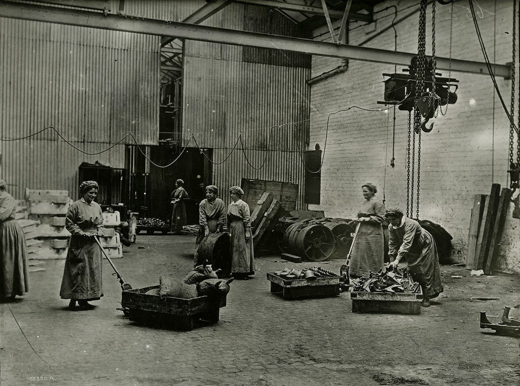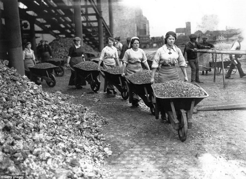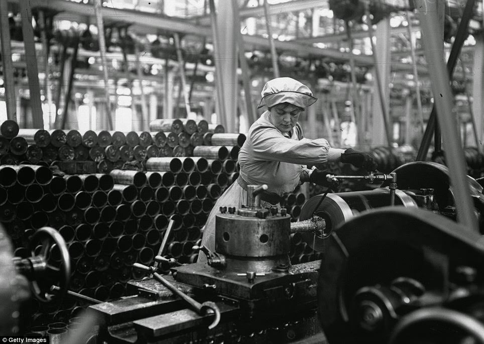 950,000 female workers were employed in British factories, including this worker, pictured making shell cases in a Vickers factory in January 1915 .Women employed in the transport industry increased by 555 per cent during the war, and included this pair of female porters at Marylebone Station in 1915.Women even took on tough, physical roles such as moving rubble, as seen in this photograph taken in Coventry during 1917.Women operating radial drilling machines, drilling holes in girdersView of canteen at munitions factoryWomen stacking woodW.R.N.S. fitting a mineWomen testing a mine with air presssureBritish woman winding cotton from spools on to rollers at lace factory in NottinghamBritish women in Nottingham tannery drawing skins from the lime pitBritish women painting planes at aeroplane factory near BirminghamBritish women working in chemical laboratory near ManchesterBritish women rubber workers in Lancashire making mouth-pieces for gas masksBritish women rubber workers in Lancashire forming the foundation for the treadWomen war workers, including the distinctively white-capped and aproned VAD nurses, parade outside Buckingham Palace in 1918.Members of the Women’s Royal Air Force arrive at Buckingham Palace, London, to attend a party for war workers in 1919.Female ambulance workers, such as this group photographed in November 1915, served both at home and on the front line.While some women became nurses, others worked in hospital workshops, such as this one at the Kensington War Hospital, making prosthetic limbs.400 women died in munitions factories, between 1914 (when this image was taken) and 1918, when the war ended.Exposure to toxic sulphur left many workers with yellowed skin, while others were killed in explosions. One 1917 incident killed 73 and flattened 900 homes.Despite being paid less than their male counterparts, many of the female munitionettes undertook dangerous and fiddly work.Members of the Women’s Fire Brigade with their Chief Officer photographed in their uniforms beside an extinguished fire in March 1916.Members of the Women’s Fire Brigade are put through their paces during a fire drill with hoses and extinguishers at full force in March 1916.A member of the Women Porters At Marylebone Station Group, pictured in 1914 giving a Great Central Railways carriage a thorough clean.As this 1917 photograph shows, female war workers didn’t just run trains and buses – they fixed and maintained them too.As part of the war effort, old paper had to be reused. These women are pulling apart old ledgers belonging to the London & South West Railway.The paper, as this photo taken on the 16th April 1917 shows, then had to be sorted into piles and stored.General view of brass fittings shopWomen inspecting motor engine partsWomen loading nitrate of soda into a skipWomen straightening and bending steel girderWomen painting steel workWomen copper banding t60 pdr shrapnelWomen taping planesWomen in charge of electric motorWomen wheeling away earth excavated for the installation of hydraulic pumpsWoman driving O.E.T. craneWomen operating radial drills, drilling valve covers and strainer plates for weed boxes for marine enginesWomen stacking woodWomen cleaning windowsWoman acting as helper at punching and shearing machineWomen transporting rough castings to the General StoreWomen engaged in labouring work in dressing shopWoman are with cores for ingot mouldWoman at battery drills, drilling angles and T bars for ribs of airship shedsWoman operating vertical drilling machines, drilling angles for connections to ribs of airship shedsWomen operating circular saw, cutting steel barWoman operating a Sunderland gear planer, gear cuttingWoman driving 20 ton O.E.T. craneWomen inserting and packing tubes in condensors for marine enginesWomen machining Admiralty electrical fittingsGeneral view of women engaged on small parts for boilers and condensors.Workers preparing for the construction of concrete shipsRailway workers cleaning carriagesRailway workers unloading goods from trainWomen railway workers painting and decoratingMine net workers wiring the floats togetherW.R.N.S. instructor at respirator and mask drill for military recruitsRailway worker pulling signal box leversWindow cleanersGirl operating stitching machine in Leicestershire boot factoryBritish women moulding and finishing stoneware taps at terra cotta works in LeicestershireBritish women working in lace factory in NottinghamBritish women working in tannery in NottinghamBritish women cleaning locomotive in MidlandsBritish women in glass factory cutting shop near BirminghamBritish women in glass factory near BirminghamBritish woman splicing airplane joints in aeroplane factory near BirminghamChemical works near Manchester – British women chemical workers in the MidlandsBritish women chemical workers in the Midlands taking limestone from stock, loading and wheeling barrows of lime to wagonsBritish rubber workers in Lancashire spreading machine for coaling canvas for tire makingBritish women rubber workers in Lancashire fixing studded tiresBritish women asbestos workers in factory in LancashireBritish women oil workers in Lancashire moulding cakes