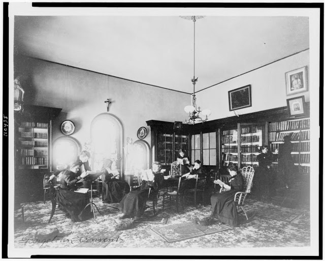 Group portrait of friends at social gathering, seated and standing with tea cups, in domestic setting, between 1890 and 1910.Interior view of dining hall, decorated for the holidays, with students sitting at tables at the Tuskegee Institute, 1902.Interior view of library reading room with male and female students sitting at tables, reading, at the Tuskegee Institute, 1902.Frances Benjamin Johnston and family on porch and in front of house, between 1890 and 1910.Chemistry laboratory at Tuskegee Institute, 1902.Interior view of chapel filled with female students at the Tuskegee Institute, 1902.Male Native American students in physical education class, Carlisle Indian School, Carlisle, Pennsylvania, between 1901 and 1903.Mathematics class at Tuskegee Institute, 1906.Library interior at Tuskegee Institute, 1906.County fair, tintype booth of Miss. F.B. Johnston, May 1903.Three male employees, including one African American man, standing behind the bar at the Willard Hotel, between 1901 and 1910.Bureau engraving & printing – stamp division, between 1890 and 1910.Art class in Georgetown Visitation Preparatory School, Washington, D.C., between 1890 and 1910.Students reading in library at Georgetown Visitation Preparatory School, Washington, D.C., between 1890 and 1910.Science class in Georgetown Visitation Preparatory School, Washington, D.C., between 1890-1910.Men loading sacks of grain from truck in courtyard into second floor doorway of barn, 1917.Gardener pushing lawn mower, posed to illustrate Rudyard Kipling’s poem The Glory of the Garden, 1917.Courtyard with wagon and team, 1917.Classroom at the Indian Industrial School, Carlisle, Pennsylvania, showing teacher observing students reading, between 1901 and 1903.Frances Benjamin Johnston seated with three other people in automobile, between 1890 and 1910.A group of tourists explore a geyser in the Upper Geyser Basin in Yellowstone National Park, 1903.Three Filipino men demonstrating the craft of working with reeds at the Pan-American Exposition, Buffalo, New York, 1901.Classroom instruction in art, United States Indian School, Carlisle, Pa., between 1901 and 1903.Frances Benjamin Johnston, full-length portrait, standing in her garden, by rose bushes, with some flowers in her hand, facing slightly right, between 1890 and 1910.Inuit man, woman, and baby at the Pan-American Exposition, Buffalo, N.Y., 1901.Consecration of the choir and the two chapels of the Cathedral of St. John the Divine, 1911.Tourists and guides picnicking in Yellowstone Park, 1903.Getting ready to hoist a mounted gun, in Washington Navy Yard, 1903.Pastoral play, the Oaks, Spring, May 4, 1906.Pan-American midway parade, 1901.
