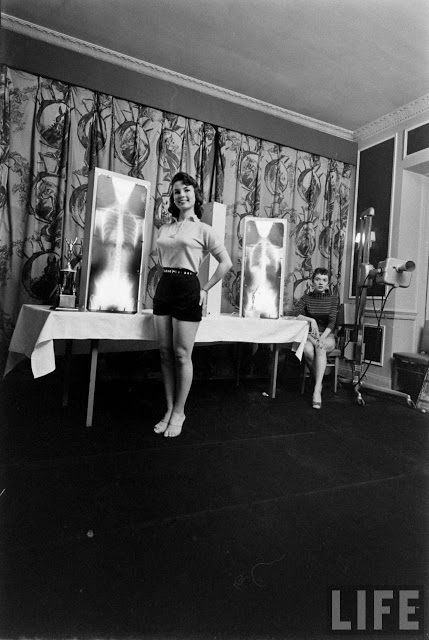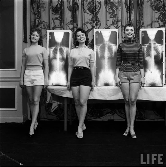 “All three were picked not only by their apparent beauty, and their X-rays, but also by their standing posture,” the Tribune reported. “Each girl stood on a pair of scales — one foot to each — and the winning trio each registered exactly half her weight on each scale, confirming the correct standing posture.”