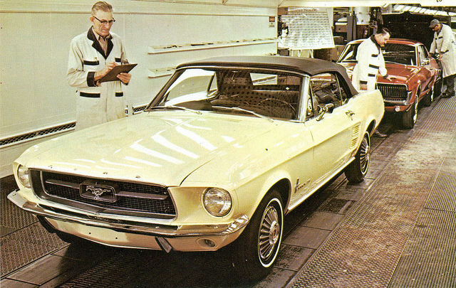 1967 Ford Mustang Convertible and Mercury Cougar Hardtop on assembly line