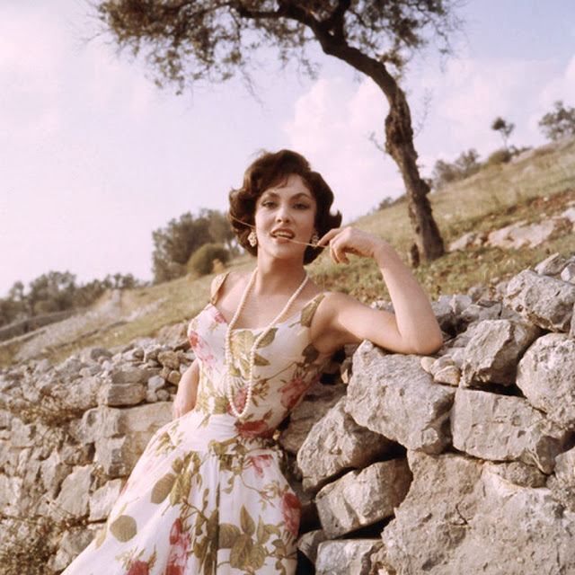 Gina Lollobrigida was born on July 4, 1927 in Subiaco, Italy. Destined to be called “The Most Beautiful Woman in the World”, Gina possibly had St. Brigid as part of her surname. She was the daughter of a furniture manufacturer, and grew up in the pictorial mountain village. The young Gina did some modeling and, from there, went on to participate successfully in several beauty contests. In 1947, she entered a beauty competition for Miss Italy, but came in third. The winner was Lucia Bosé (born 1931), who would go on to appear in over 50 movies, and the first runner-up was Gianna Maria Canale (born 1927), who would appear in almost 50 films. After appearing in a half-dozen films in Italy, it was rumored that, in 1947, film tycoon Howard Hughes had her flown to Hollywood; however, this did not result in her staying in America, and she returned to Italy (her Hollywood breakout movie would not come until six years later in the John Huston film Beat the Devil (1953)).