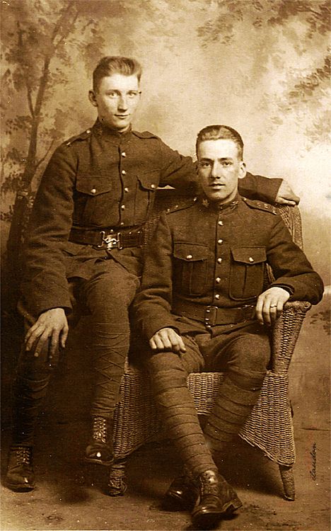 Lieutenant Felix Olivier Bolte, Canadian Expeditionary Force Lt Bolte died, aged 24, on 2 September 1918 on the Western Front.Private A. BlayCorporal Filip Konowal 47 (British Columbia) Battalion, Canadian Expeditionary Force. Corporal Konowal was awarded the Victoria Cross at the Battle of Hill 70 in Lens, France for actions during 22- 24 August 1917Lieutenant C Alvarez 32 Battalion, Canadian InfantryWilliam SimmsHarry MasonArthur and William Ware, No. 2 Construction BattalionCharlie and Wally GrayCarman StothersFrederick Maurice Watson HarveyThree officers of The Royal Canadian Regiment: brothers Lieut. Rupert Murray Millett, MC, Lieut. Frederick Brenton Millett, MC, and Lieut. John Stanley Millett.Lt William John Alexander Stewart, 12th Canadian Machine Gun Company July 15, 1917A studio portrait of a Canadian infantryman whose uniform displays two wound stripes on his sleeve during World War One, circa 1918. Lt Col LeCain, 25th BattalionPte. Henry Roland Garnault AgassizJohn Malcolm WalkerRupert HindsColin Greener & Charles LightColin GreenerGeorge PriceJames Callaghan McQuireCaptain A. Ross RobertsonElsley AllenSapper Hugh C. Elliott, Royal Canadian EngineersLance Corporal C. HaskellPrivate Louis Bender was killed 9 August 1918.Private Leo FergusonLieutenant Herbert Charles Rounds. He was killed in action on 26 August 1918.Private A. Turner. He was killed in action on 11 April 1917 at Vimy Ridge, France.Captain Carleton Carroll Green. He was killed in action at Courcelette on 26 September 1916 and was buried with his major and the colonel of the battalion with full military honours.Private John M. Maley. He died in 1917.Platoon Sergeant J. Spooner. He served with the 18th Battalion, 4th Brigade, of the Canadian Expeditionary Force. He was killed in action 14 November 1915.Private Walter Conrad Schierholz. He was killed Dec. 1917.Cadet Walter T. Philip. He enlisted at Kitchener, Ontario, in the Royal Flying Corps. He was killed in an accident at Leaside, Ontario, on 5 September 1918Private Herbert and Corporal Fred Christian Luft