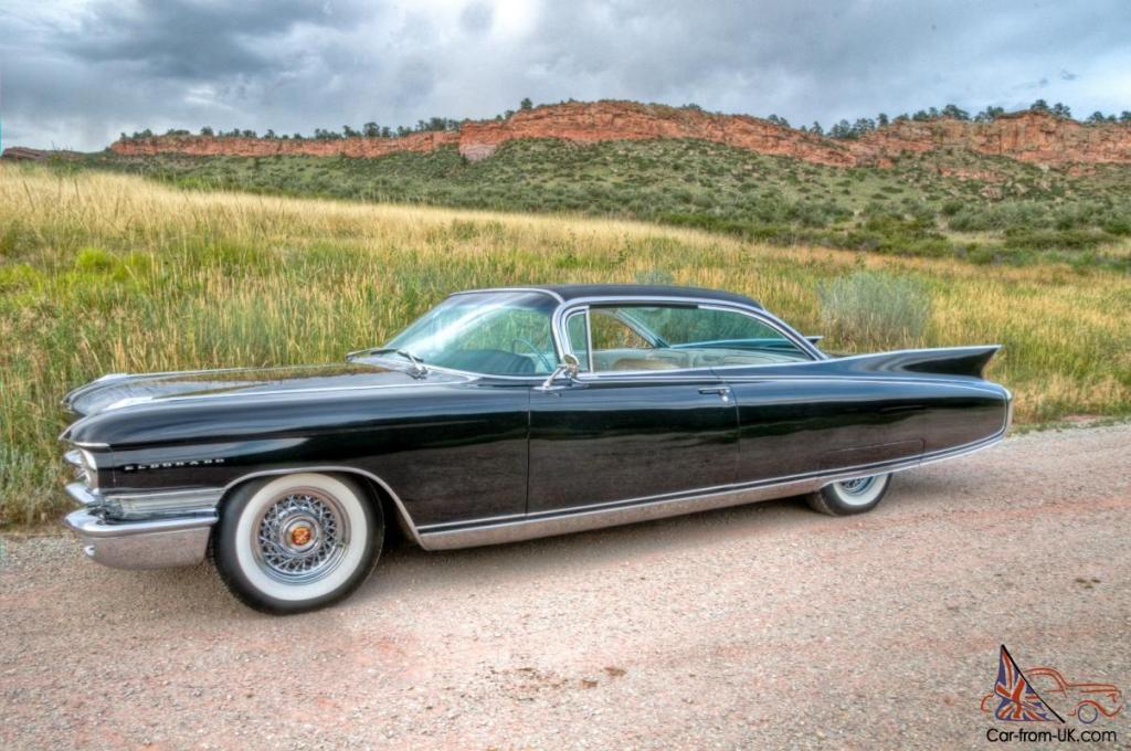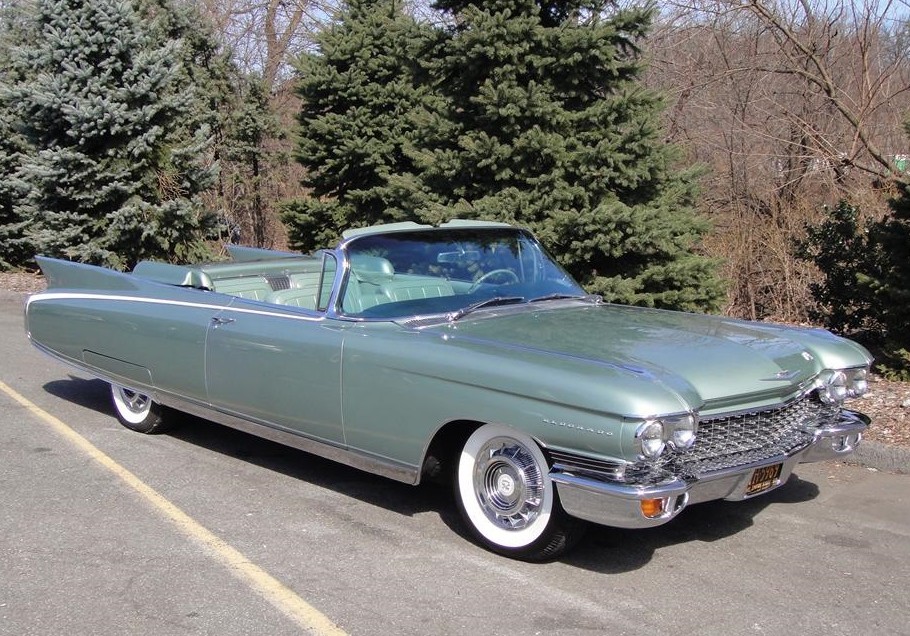 1960 Cadillac Eldorado More exclusive — and more expensive — were the two-door Eldorados: Seville coupe and Biarritz convertible. They came with a 345-horsepower version of the 390-cid V-8 that guzzled gas through three two-barrel carburetors.