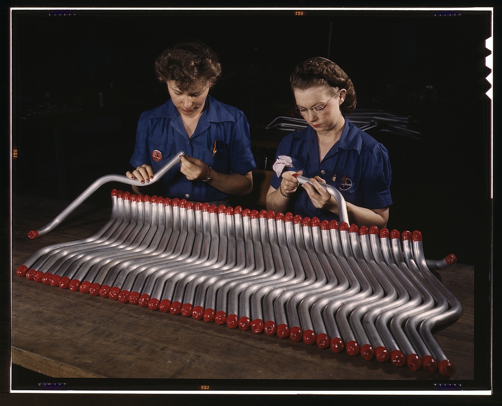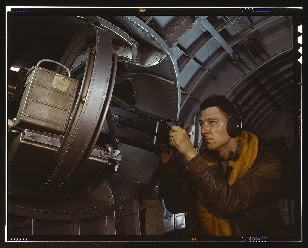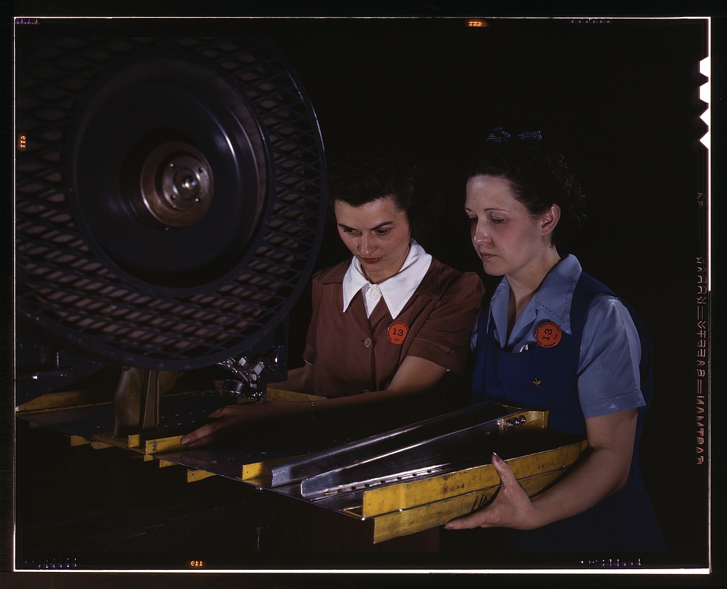 Crane operator at TVA’s Douglas Dam, TennesseeThis woman in a glass house is putting finishing touches on the bombardier nose section of a B-17F navy bomber, Long Beach, Calif.Workers are trained to do precise and vital engine installation detail in Douglas Aircraft Company plants, Long Beach, Calif.Women at work on bomber, Douglas Aircraft Company, Long Beach, Calif.Workers become skilled shop technicians after careful training in the school at the Douglas Aircraft Company plant, Long Beach, Calif.workers install fixtures and assemblies to a tail fuselage section of a B-17 bomber at the Douglas Aircraft Company plant, Long Beach, Calif.Large electric phosphate smelting furnace used in the making of elemental phosphorus in a TVA chemical plant in the Muscle Shoals area, AlabamaMarine lieutenant by the power towing plane for the gliders at Page Field, Parris Island, S.C.Two workers are shown capping and inspecting tubing which goes into the manufacture of the Vengeance (A-31) dive bomber made at Vultee’s Nashville division, Tennessee.Operating a hand drill at Vultee-Nashville, a worker is working on a Vengeance dive bomber, TennesseeOperating a hand drill at Vultee-Nashville, woman is working on a Vengeance dive bomber, TennesseeWorking on a Vengeance dive bomber, Vultee [Aircraft Inc.], Nashville, TennesseeA nose wheel and landing gear assembly for a B-25 bomber under construction in a western aircraft plant, North American Aviation, Inc., CalifPart of the cowling for one of the motors for a B-25 bomber is assembled in the engine department of North American [Aviation, Inc.]’s Inglewood, Calif., plantMetal parts are placed on masonite by this woman employee before they slide under the multi-ton hydropress, North American Aviation, Inc., Inglewood, Calif.Sheet metal parts are numbered with this pneumatic numbering machine in North American’s sheet metal department, N[orth] A[merican] Aviation, Inc., Inglewood, Calif.Two employees of North American Aviation, Incorporated, assembling a section of a wing for a P-51 fighter planeAn employee of North American Aviation, working over the landing gear mechanism of a P-51 fighter plane, Inglewood, Calif. The mechanism resembles a small cannonRiveting team working on the cockpit shell of a B-25 [i.e. C-47] bomber at the plant of North American Aviation, Inc., Inglewood [i.e. Douglas Aircraft Company, Long Beach], Calif.Welder making boilers for a ship, Combustion Engineering Co., Chattanooga, Tenn.A combat crew receives final instructions just before taking off in a mighty YB-17 bomber from a bombardment squadron base at the field, Langley Field, Va.Hitler would like this man to go home and forget about the war. A good American non-com at the side machine gun of a huge YB-17 bomber is a man who knows his business and works hard at itTightening a nut on a guide vane operating seromotor in TVA’s hydroelectric plant, Watts Bar Dam, Tennessee.Truck driver at TVA’s Douglas Dam, TennesseeCarpenter at work on Douglas Dam, Tennessee (TVA)Tank driver, Ft. Knox, Ky.Mechanic, motor maintenance section, Ft. Knox, Ky.M-4 tank crews of the United States, Ft. Knox, Ky.Good man, good gun- a private of the armored forces does some practice shooting with a 30-calibre Browning machine gun, Fort Knox, Ky. The gun is mounted on a pedestal for anti-aircraft workCrewman of an M-3 tank, Ft. Knox, Ky.Tank commander, Ft. Knox, Ky.Halftrack infantryman with Garand rifle, Ft. Knox, Ky.Man of the Fort Story, Va. coastal defenseMan of the Fort Story, Va., coastal defense16-inch coastal artilleryElectronics technician, Goodyear Aircraft Corp., Akron, OhioManufacture of self-sealing gas tanks, Goodyear Tire and Rubber Co., Akron, Ohio
