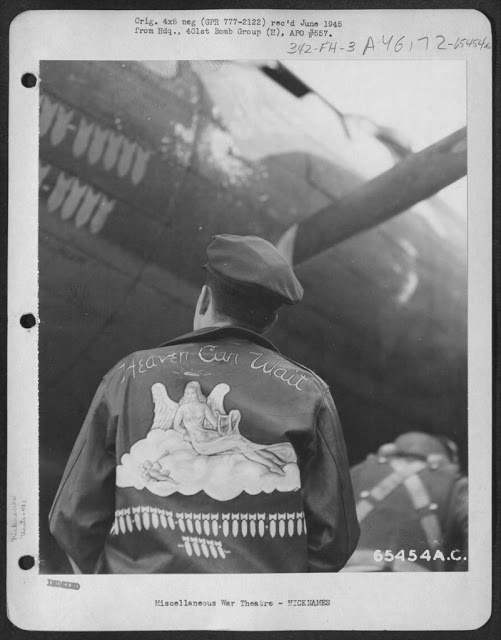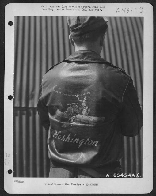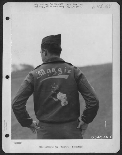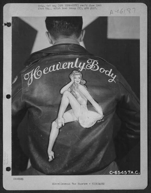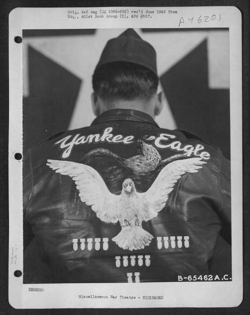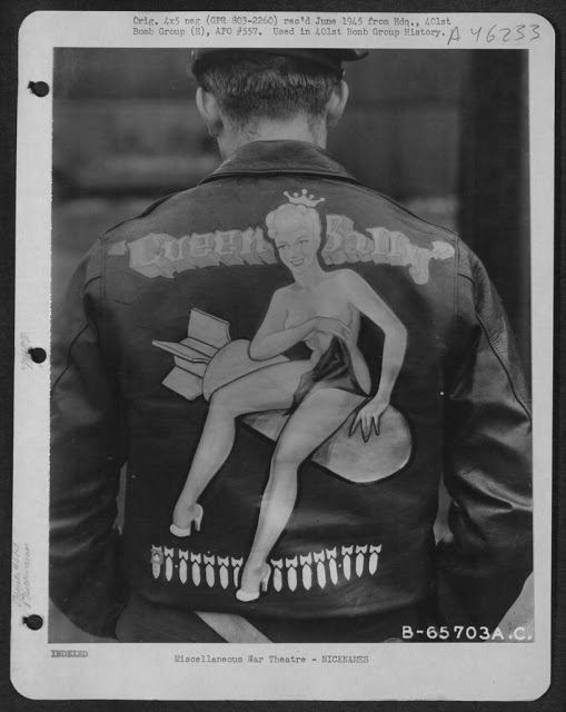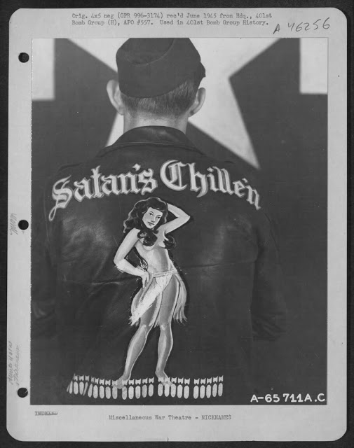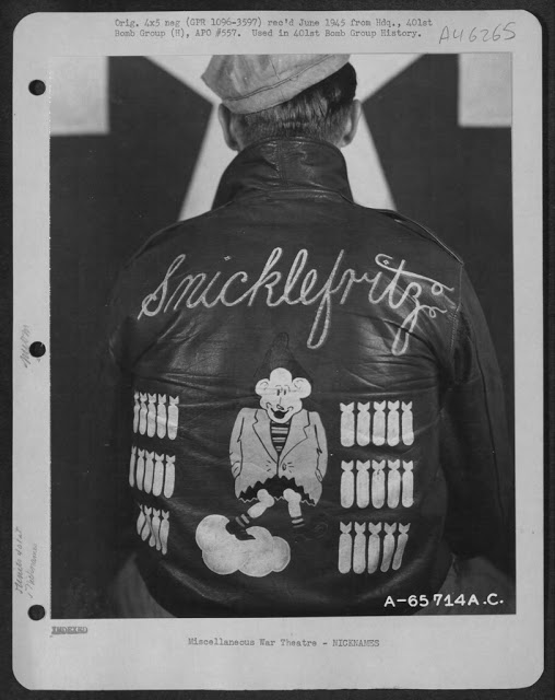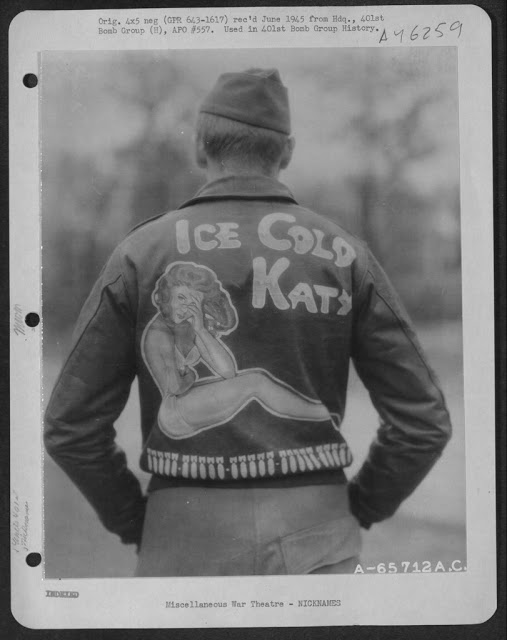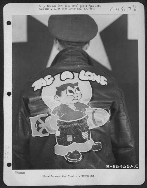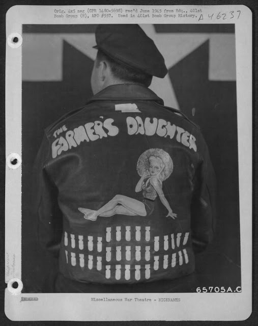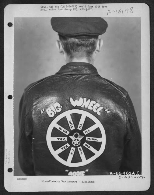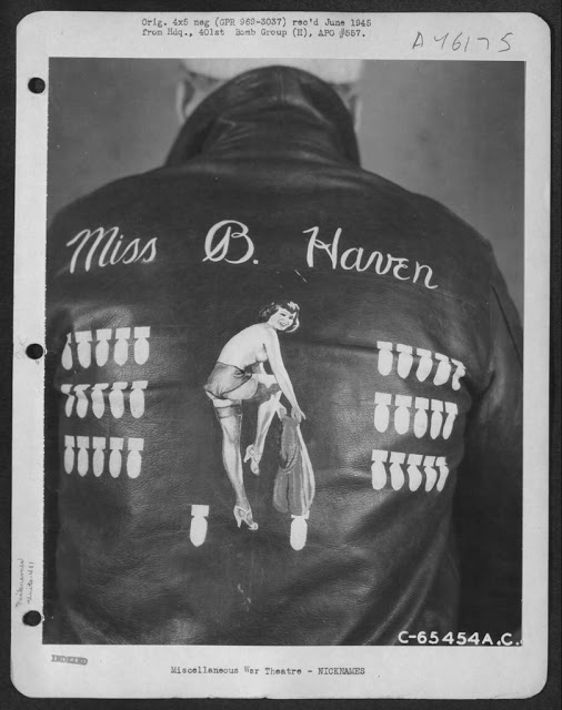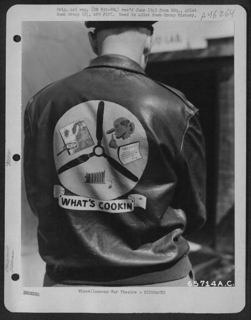 In WWII almost any kind of paint that could be used was used. Enamels if they could get it, lead based aviation paint, oil paint… whatever the ‘artist’ could get their hands on. Some squadron artists could only get their hands on yellow airplane paint, so the artwork on the jacket was done in yellow. As troops settled in, painting flight jackets became a cottage industry for the local artisans. Since some of the paints were not meant to be used on leather, they rubbed off, flaked off, and faded.