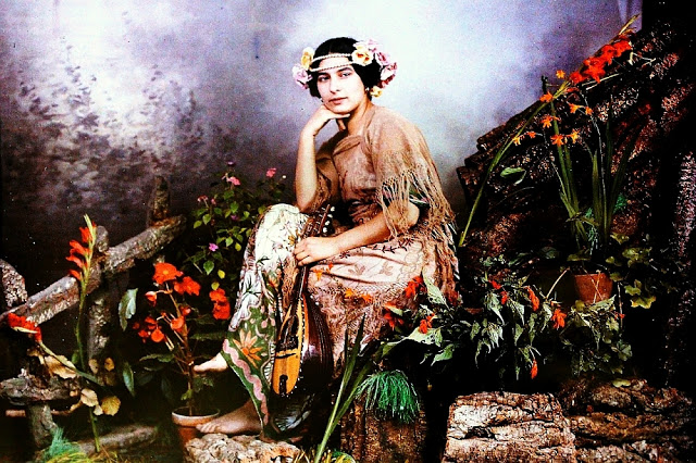 A collection of amazing color portrait photos of women from the early 20th century; these photographs were made on color photographic Autochrome plate technology.