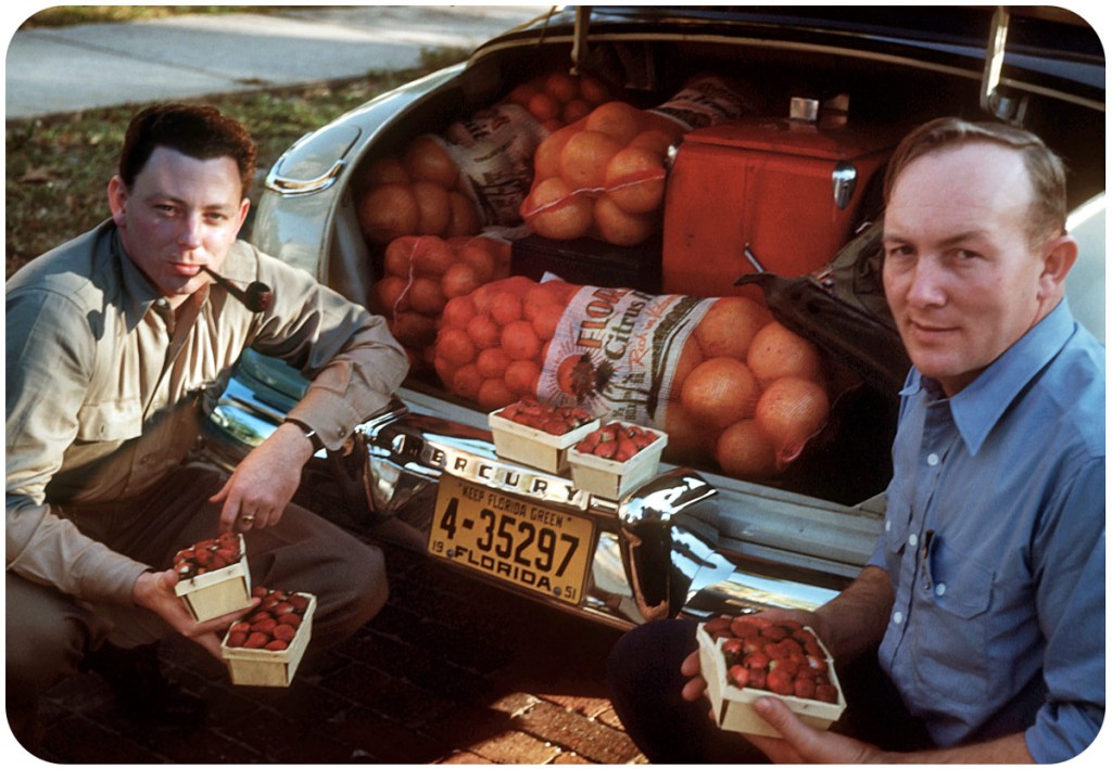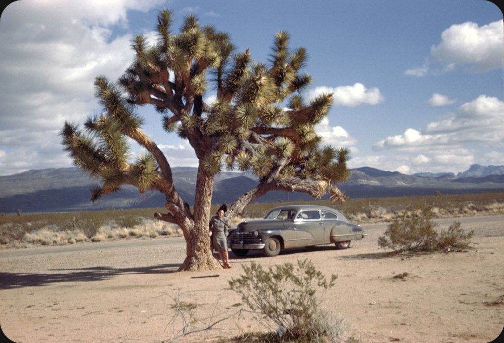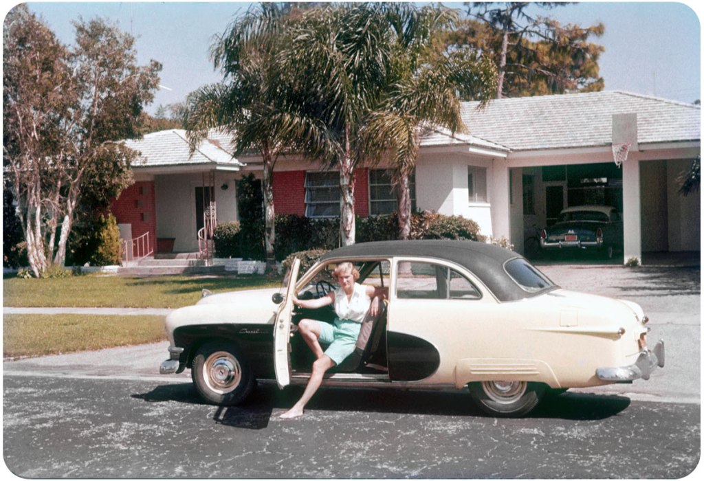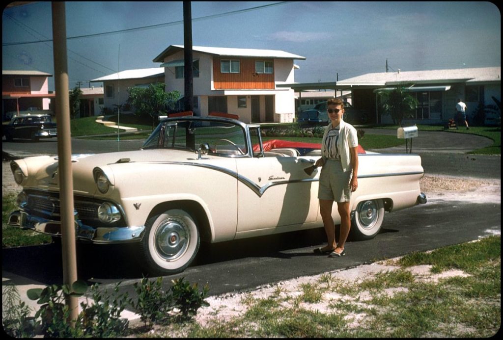 Hollywood! 1956 – A couple of hip chicks from Illinois strike a pose behind the Hollywood Roosevelt Hotel and Grauman’s Theater on N. Orange. The mint green 1955 Chevy 210 4-door sedan.Daytona Beach — 1956Ice Fishing – Early 1950s, Somewhere in cold Michigan’s thumbThe Old Car – 1954Cafe Du Monde, New Orleans – 1958Canoe Run – 1951. This 1943 (?) Pontiac Coupe really IS bigger than a boat.Southeast Vacation — 1956At the Lake – 1952Dairy Creme, Oklahoma – 1956RCA Building Times Square, NYC – 1953Joshua Tree — 1947Bandshell, Sanford, FL – Early 1950s. Bandshell on Lake Monroe (St. John’s River) in Sanford, Florida. Submarine Chaser SC679 sits ready.GO! 1958Teepee Drive-in / Buffalo BurgersGrand View Ship Hotel — 1953Thanksgiving blizzard 1950 – Xenia, OhioMoccasins, Indian Rugs, Jewellery, Curios – early 1950sThe Smiling Irishman, Pico Blvd., Los Angeles, CA – 1952Logan, WV – 1950Kalakaua Ave., Honolulu, Hawaii, 19571952 Buick Super — Clearwater, FLSteven begrudgingly poses with his chick magnet, a Nash Metropolitan.Bulletproof Whitewalls — 1958 Oldsmobile. Somewhere near Niagara Falls.1951Town Hill Hotel — 1948, Little Orleans, MD.1954 Mercury Monterrey1951 Ford CrestlineCadillac in D.C. — 1950sAfternoon Sun on the Chevy — 1950Ft. Wayne, IN – 1955Ice Fishing from the ’46 Chrysler New Yorker. Somewhere in Michigan’s thumb district around 1955.Mom and her ’55 Ford Fairlane Sunliner, 1956Parade, Rhinelander, WI – 1956. Note the 1955 Nash Statesman.Ft. Wayne, IN – 1955