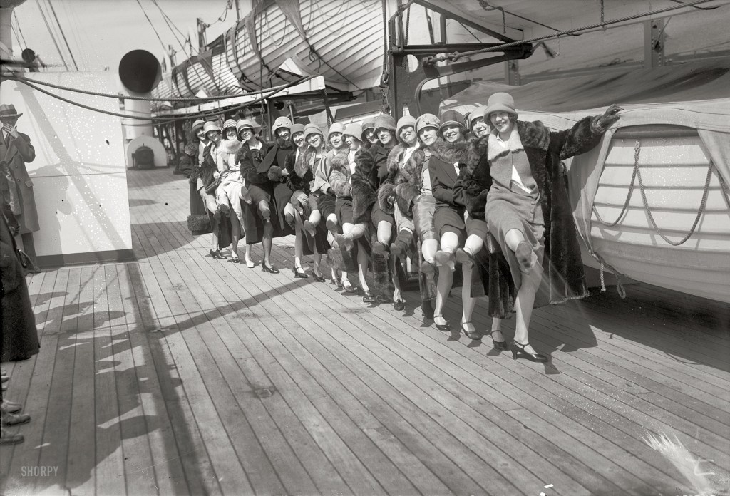 Even the mugshots were cool, 1925.Miss Universe Ella Van Hueson, circa June 16, 1928.Silent film star Evelyn Brent, 1924.Harry Houdini demonstrates photo manipulation by taking a “spirit photograph” with Abraham Lincoln, 1920Three young men in a vehicle, 1924Aviator Bessie Coleman and her plane in 1922Sharpshooter Annie Oakley with a gun that Buffalo Bill gave her, 1922.London Bus, 1928Conjoined twins Daisy and Violet Hilton, 1920sThe Hollywood sign originally said “Hollywoodland” when it was installed in 1923.Women in Chicago being arrested for wearing one piece bathing suits and showing a little leg. 1922.Traffic officer, Washington, D.C., 1923Actor Rudolph Valentino, 1920sMiss America Contest, 1921Texaco Service 1924Monaco 1929Here, cycling up the Champs Elysees are the nearly 160 competitors of the Tour de France in June, 1926.An ice-cream vendor selling sodas and sweets to children on the city streets of Paris, 1925.Hiram Wesley Evans, who was Imperial Wizard of the Ku Klux Klan, walking in the mass Klan march in Washington, D.C., in 1926New York City prohibition agents dumping liquor into the gutter, 1920s.Model Hannah Lee Sherman dressed in a Chanel coat, brimless hat, fox stole, suede bag, and snakeskin shoes is helped out of a car on Park Avenue in NYC.Customs men examining liquor seized from a rum-runner ship from Havana that docked at a port on the harbor of New York.Chicago policewomen checking for violations of the bathing suit-length laws, 1921.Howard University Flappers, 1920.Al Capone in a Bathing Suit at His Palm Island Florida Estate, 1929.A smoggy Ludgate Circus, London, 1922.Corner of Michigan and Griswold. Detroit, Michigan, 1920.2nd May 1925: 58 light cars starting the 100 miles high speed reliability trials at Brooklands, Weybridge, Surrey, England. Directing traffic the Minneapolis way, 1923Miller’s restaurant, 126 Washington Avenue south, Minneapolis, January 16, 1920A mourner grieves at the bier of Rudolph Valentino during the actor’s funeral, August 1926.Berlin, 1928Cafe du Dome, Paris 1928.British soldiers wear gasmasks during manoeuvres. 1928Women working in a factory, 1920sA Goodyear Six-wheeled Bus from 1921Leningrad, Russia, 1920sAmelia Earhart, Los Angeles, 1928.T.E. Lawrence, ‘Lawrence of Arabia’, on his Brough Superior motorcycle. 1927The two Royal Princes, Prince Albert, foreground, and Prince Henry, at Cambridge University use motorcyles to go to lectures. 1920Signor Davide Cislaghi with his one wheel motorcycle called the “Monowheel”, 1923.Paris, 1920sYoung beauty in swimsuit, 1920sRae Samuels holds the last bottle of beer that was distilled before prohibition went into effect in Chicago, Ill., Dec. 29, 1920.Two bathers being escorted off the beach by a police woman. Chicago, Ill., 1922Babe Ruth batting in 1926.Charles Lindbergh with the Spirit of St. Louis before his Paris flight, 1927“Tiller girls.” Arriving from England, 16 chorus girls in the troupe originated by British musical-theater impresario and precision-dancing pioneer John Tiller. New York, 1926.Emily Lucas of Tonbridge, England, with her 23rd child, 1926.Miss Mercedes Gleitze starts from Folkestone to attempt to swim the channel. This was her seventh try. Mercedes Gleitze became, at her eighth attempt, the first British woman to swim the channel. 1926American writer F. Scott Fitzgerald poses with his wife Zelda and their daughter Scottie aboard a ship as they return to America from a two-year European trip in Dec. 1926.Charlie Chaplin, his son, his mother-in-law and his wife. 1926Louis Wagner, winner of the first English Grand Prix, 1926Norma Smallwood, of Tulsa, Okla., poses in her bathing suit with trophies after becoming Miss America 1926 in Atlantic City, N.J., on Sept. 11, 1926.President Calvin Coolidge, with wife Grace and Secretary of Treasury Andrew Mellon, opens the Baseball season by throwing out the first ball, Apr. 22, 1924.Piggly Wiggly trucks in Washington, D.C., at the Christo Cola Bottling Co., 1924