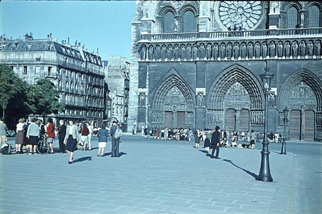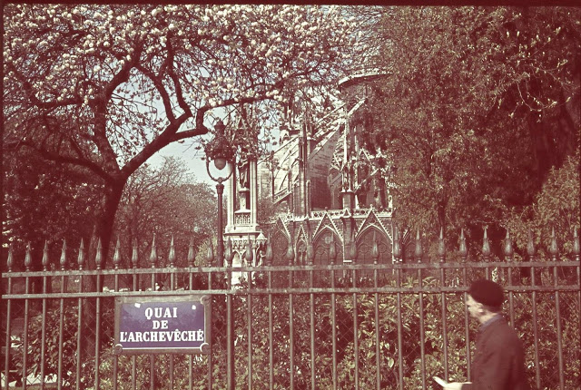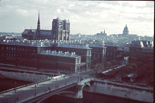 These images were taken in Occupied Paris during World War II by André Zucca for Nazi German propaganda magazine Signal using rare Agfacolor film supplied by the Wehrmacht. Zucca was arrested after the 1944 liberation but never prosecuted. He worked until his death in 1976 under an assumed name.