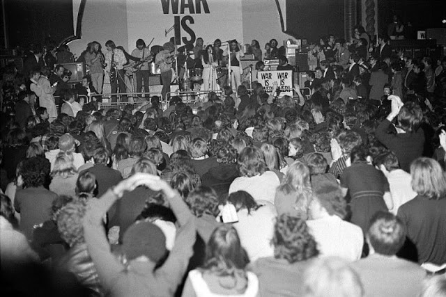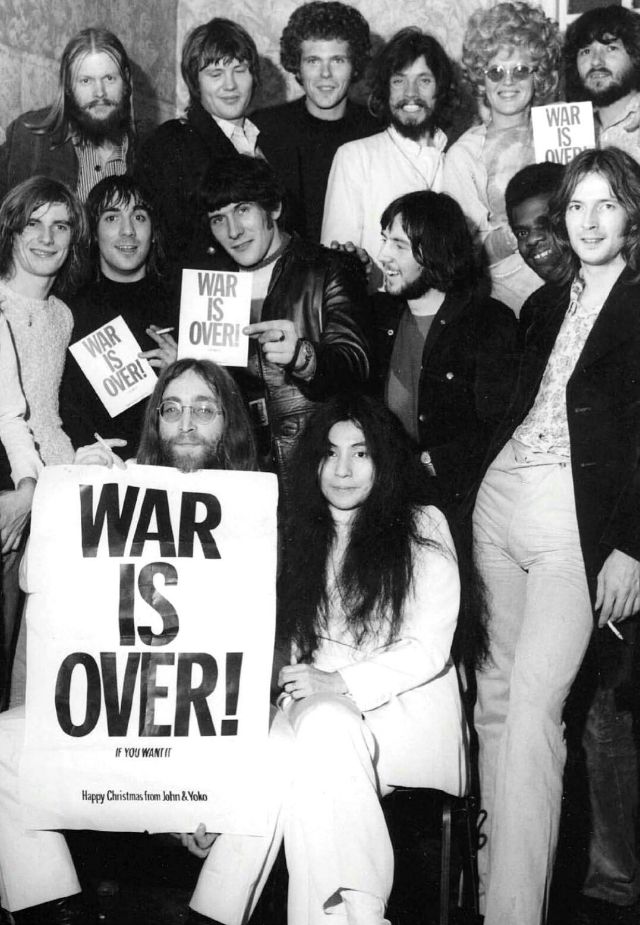 After months of trying to bring their Bed-In to the United States, John Lennon and Yoko Ono launched the worldwide billboard and poster campaign, War Is Over! The campaign was launched on 15 December 1969 at the “Peace for Christmas” concert, a benefit for UNICEF held at London’s Lyceum Ballroom.