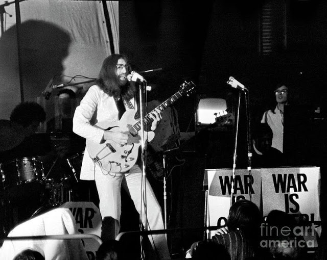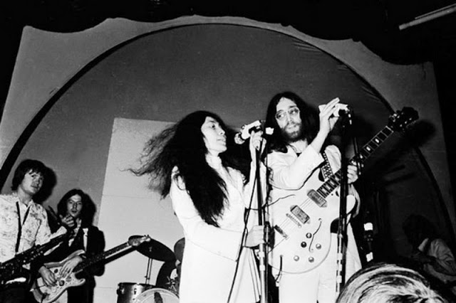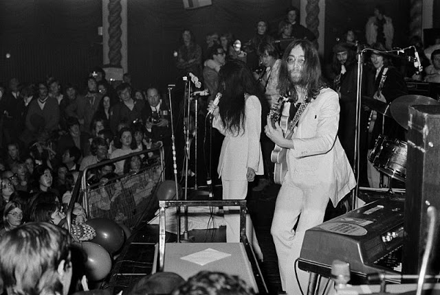 John Lennon and Yoko Ono performed with George Harrison, Keith Moon, Billy Preston, and The Delaney and Bonnie Band, Alan White, Bobby Keyes, Keith Moon, Klaus Voormann, Jim Gordon and Billy Preston – as the Plastic Ono Supergroup. Their two-song, twenty-five minute set featured extended versions of both sides of their latest single: Cold Turkey and Don’t Worry Kyoko.