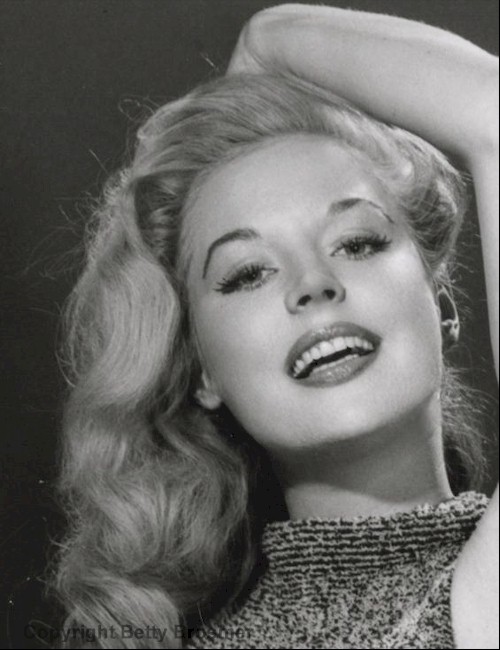 Playboy magazine pursued Brosmer for an exclusive pictorial, and a photo shoot was set up in Beverly Hills. The resulting picture set was rejected, however, after Brosmer declined to do any nude posing: “I wore sort of a half-bra or low demi-bra with nothing showing … and that’s what I thought they wanted.” Playboy threatened a lawsuit over the alleged breach of contract, but ultimately relinquished the case. The photos were eventually sold to Escapade magazine and published in its anthology issue Escapade’s Choicest #3 (1959). Brosmer never did any nude or semi-nude modeling throughout her long career: as she explained later in life, “I didn’t think it was immoral, but I just didn’t want to cause problems for others … I thought it would embarrass my future husband and my family”.