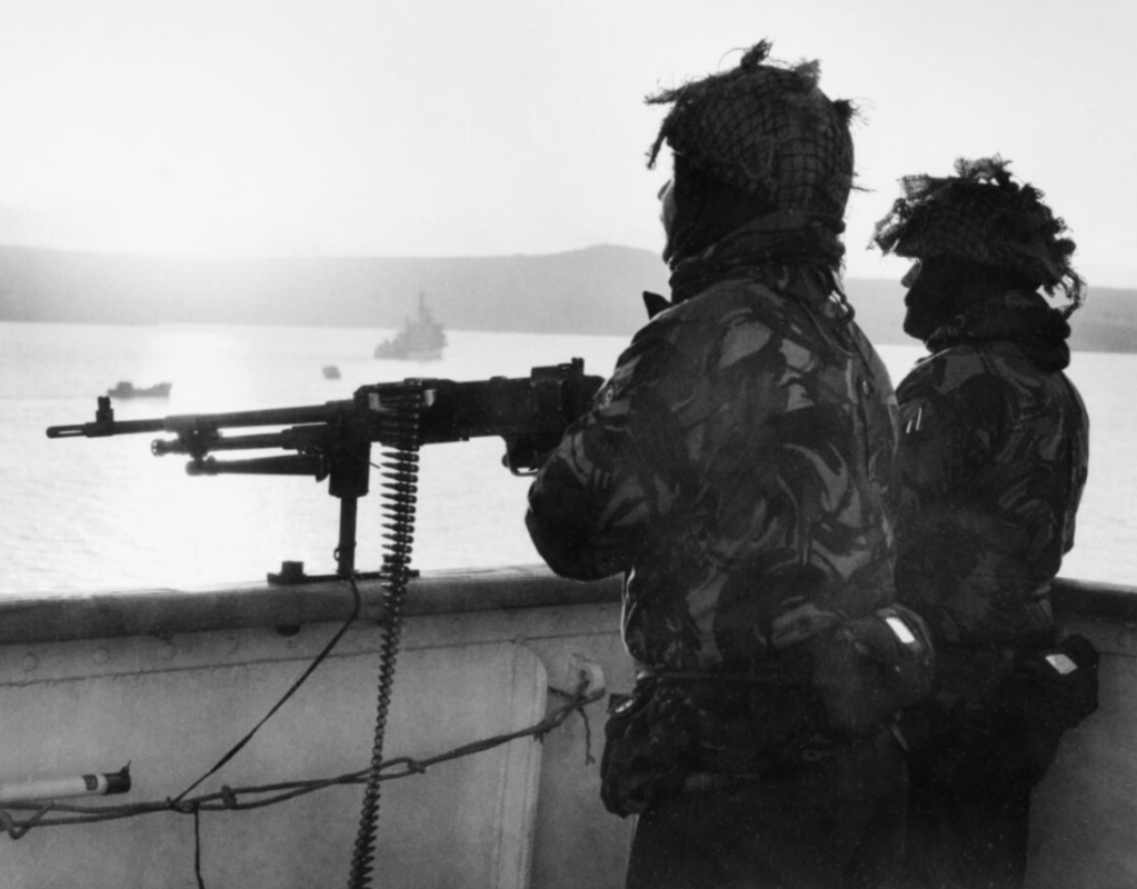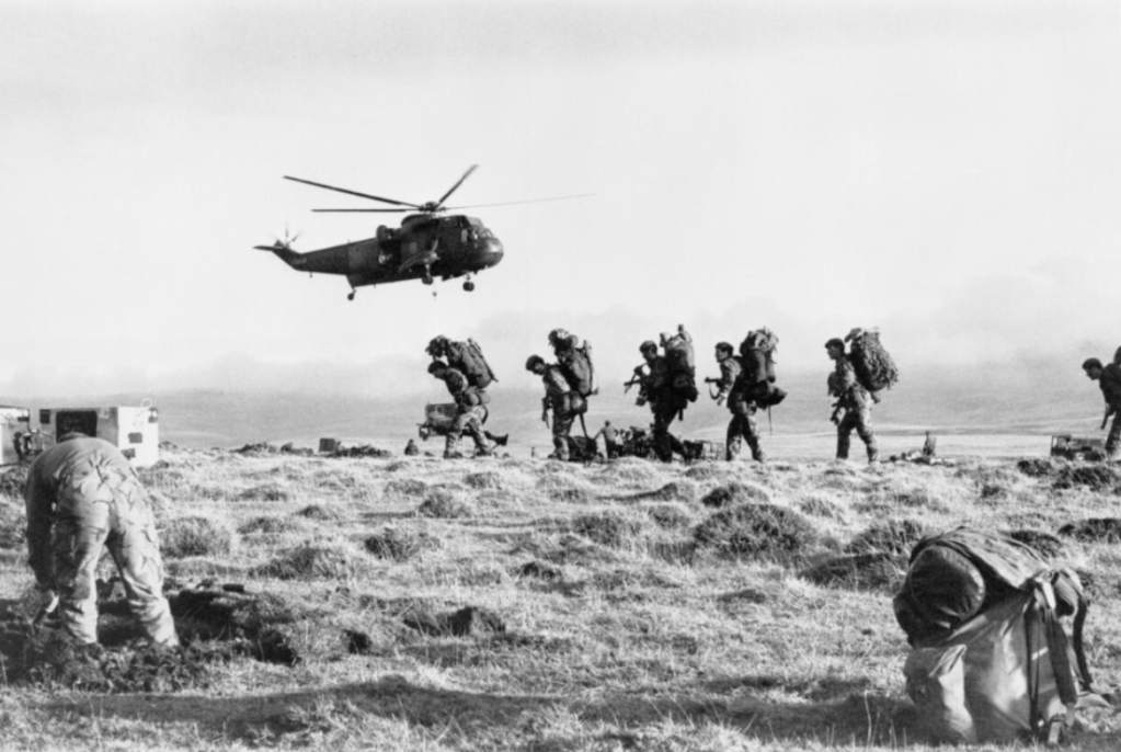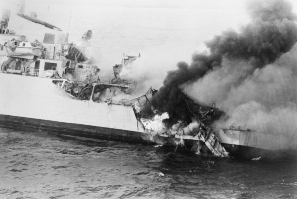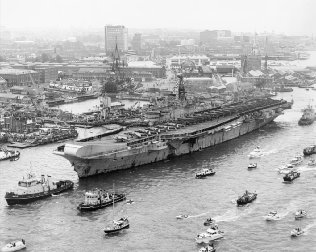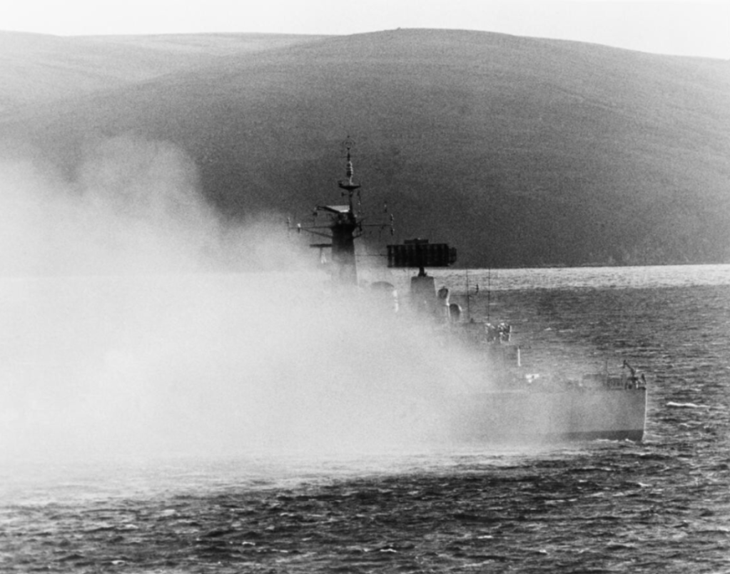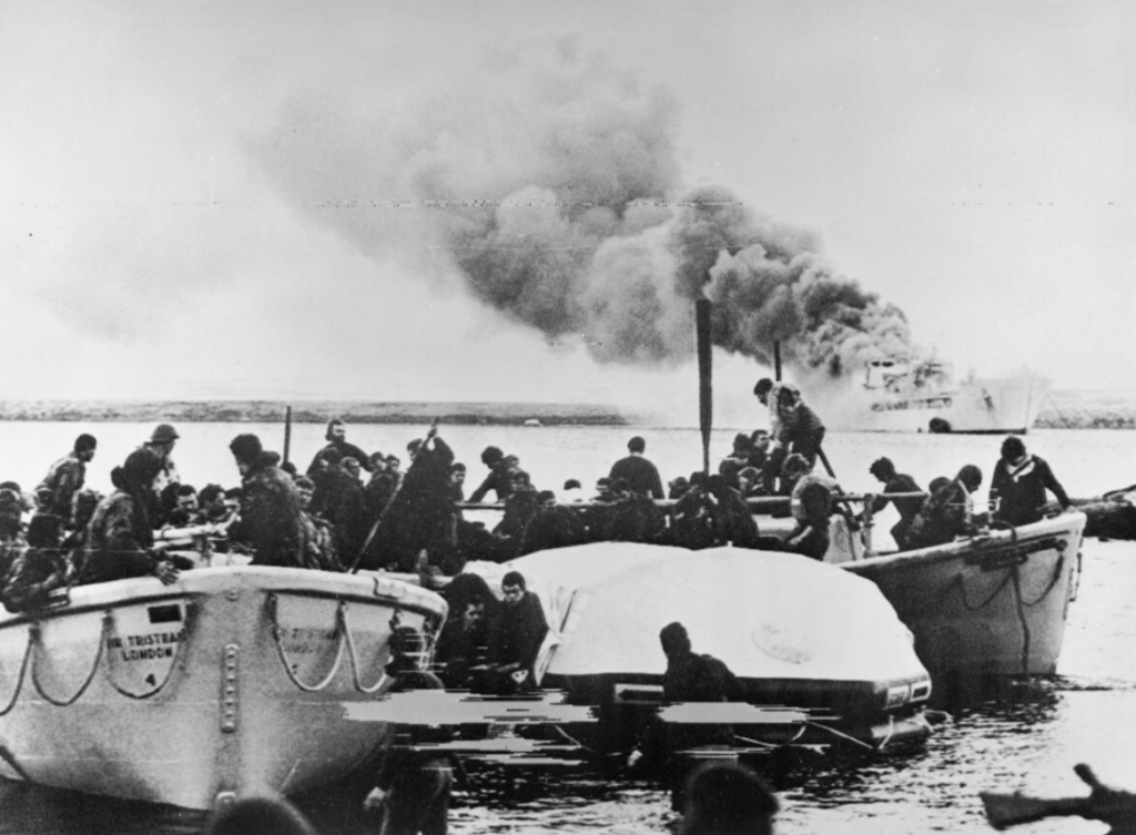 HMS HERMES about to berth at Portsmouth Harbour on her return from the Falkland Islands, 21 July 1982.HMS HERMES passes HMS VICTORY as she enters Portsmouth harbour on returning from the Falklands on 21 July 1982.The aircraft carrier HMS HERMES sails out of Portsmouth for the South Atlantic, at the start of the Falklands War, 1982.HMS HERMES leaves Portsmouth for the South Atlantic, 5 April 1982.View from HMS HERMES of the vast number of small boats which welcomed the aircraft carrier home from the Falklands and escorted her into Portsmouth Harbour on 21 July 1982.Surrounded by life rafts launched by her crew, the Argentine cruiser GENERAL BELGRANO sinks after being torpedoed by the British submarine HMS CONQUEROR on 2 May 1982.THE FALKLANDS CONFLICT, APRIL – JUNE 1982 (FKD 4) The Churchill class nuclear powered submarine HMS CONQUEROR returns to her base at Faslane in Scotland on 3 July 1982 after deployment to the South Atlantic during which she sank the Argentine cruiser GENERAL BELGRANO on 2 May 1982. HMS CONQUEROR was the first nuclear submarine to sink another warship in combat. Two British Aerospace Sea Harrier FRS 1s in flight. They are from background to foreground: ZA176 and XZ451 both of 801 Naval Air Squadron.Two British Aerospace Sea Harrier FRS 1s in flight. Nearest to the camera is ZA176 of 801 Naval Air Squadron. The other aircraft is believed to be XZ451 also of 801 NAS.A formation of Royal Navy Sea Harriers in flight shortly before being deployed during the Falklands Conflict.THE FALKLANDS CONFLICT, APRIL – JUNE 1982 (FKD 83) A British Aerospace Sea Harrier (ZA177) of No 800 Naval Air Squadron, Fleet Air Arm, piloted by Lt Simon Hargreaves lands on the flight deck of the amphibious assault ship, HMS INTREPID during the Battle for Tumbledown on 13 June 1982. The Harrier was unable to use the SHEATHBILL temporary airstrip on the Falkland Islands and lacked the fuel to return to HMS HERMES. It therefore diverted to HMS INTREPID which had been recommissioned at the start of the Conflict.HMS PLYMOUTH on fire after being attacked by five Argentine Mirage aircraft on 8 June 1982. The ship was badly damaged but survived.HMS ARGONAUT on fire in San Carlos Water after being attacked and badly damaged in Argentine air attacks on 21 May 1982.The sinking of HMS ANTELOPE in San Carlos Water. The explosion of the second Argentine 1000-lb bomb on board the ship broke its back and cause the frigate to sink. A bomb disposal officer had been attempting to defuse the bomb at the time.The sinking of HMS ANTELOPE in San Carlos Water. Argentine 500lb bombs explode on board HMS ANTELOPE on the night of 23-24 May 1982. Two bombs had been dropped by an Argentine aircraft flying at extremely low level on HMS ANTELOPE during the day of 23 May. The bombs, which did not explode, lodged in the engine room of the ship. One detonated while it was being defused. The explosion broke the back of the ship which sank.The bow and stern sections of HMS ANTELOPE in San Carlos Water in the Falkland Islands after the ship was sunk by Argentine air attack on 24 May 1982.The sinking of the Royal Navy frigate HMS ARDENT. Close up showing the stern of HMS ARDENT on fire after being attacked for the second time in San Carlos Water by the Argentine Air Force on 21 May 1982. No fewer than five bombs had struck ARDENT’s hangar and flight deck area and 22 lives were lost.The sinking of the Royal Navy frigate HMS ARDENT. HMS ARDENT on fire, with HMS YARMOUTH alongside, after being attacked for the first time in San Carlos Water by the Argentine Air Force on 21 May 1982. The ship had been struck by two 1,000lb bombs and 22 lives lost. HMS YARMOUTH attempted to assist with firefighting and then evacuated the crew (who can be seen lining the side of the ship.Survivors of HMS ARDENT wearing “once-only” survival suits, on the flight deck of HMS YARMOUTH after abandoning ship in San Carlos Water on 21 May. HMS ARDENT had been damaged in two Argentine air attacks.The abandoned HMS ARDENT in San Carlos water after two Argentine air attacks. HMS YARMOUTH (left) pulls away from ARDENT after taking off her crew.A low aerial view of HMS ARDENT at anchor in San Carlos Water after being damaged in the stern by the first of two Argentine air attacks by A4-Q Skyhawks of the Argentine Navy’s 3rd Fighter Attack Squadron. In this attack, two 500lb bombs exploded in the Ship’s hangar, destroying the Westland Lynx helicopter and Seacat missile launcher. A third bomb lodged in the After Auxiliary Machinery Room without exploding. Although not disabled at the time of this photograph, the subsequent air attack brought the Ship to a halt. HMS ARDENT sank on 22 May.Damage to the hangar and after superstructure of HMS ARDENT sustained in two attacks in Falkland Sound by A4-Q Skyhawks of the Argentine Navy’s 3rd Fighter Attack Squadron in San Carlos Water on 21 May 1982. In the first attack, two 500-lb bombs exploded in the Ship’s hangar, destroying the Westland Lynx helicopter and Seacat missile launcher and a third lodged in the After Auxiliary Machinery Room without exploding. In the second attack, two more direct hits on the Ship’s stern caused the fires to spread out of control and brought her to a halt. Twenty two lives were lost during the attack. HMS ARDENT sank on 22 May.Lieutenant Commander N D Ward AFC RN, Commanding Officer of No 801 Naval Air Squadron, Fleet Air Arm on board HMS INVINCIBLE. The photograph is believed to have been taken on 21 May after Lt Cmdr Ward shot down an Argentine Mirage. He is seen here wearing his flying helmet.A Royal Navy gunner mans a deck mounted 7.62mm General Purpose machine gun for use against low-level Argentine air attack in San Carlos Water. He is wearing an anti flash hood and gauntlets as protection against the possibility of fire.Royal Marines from 3 Commando Brigade raise the Union Jack on landing at San Carlos beachhead during Operation SUTTON on 21 May 1982.The San Carlos land