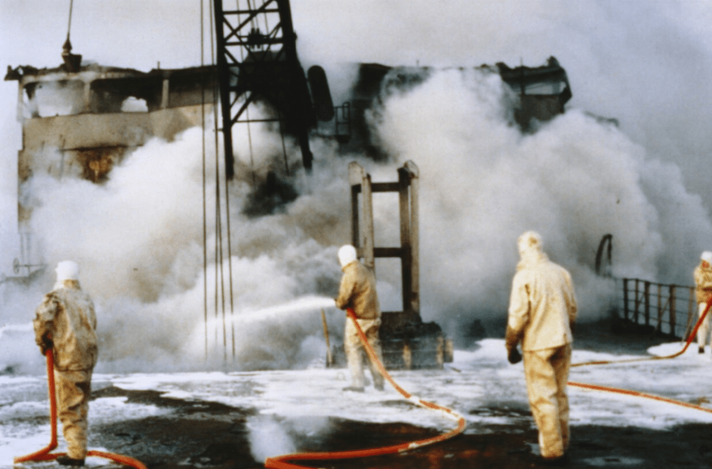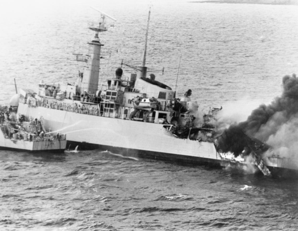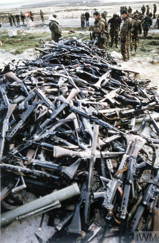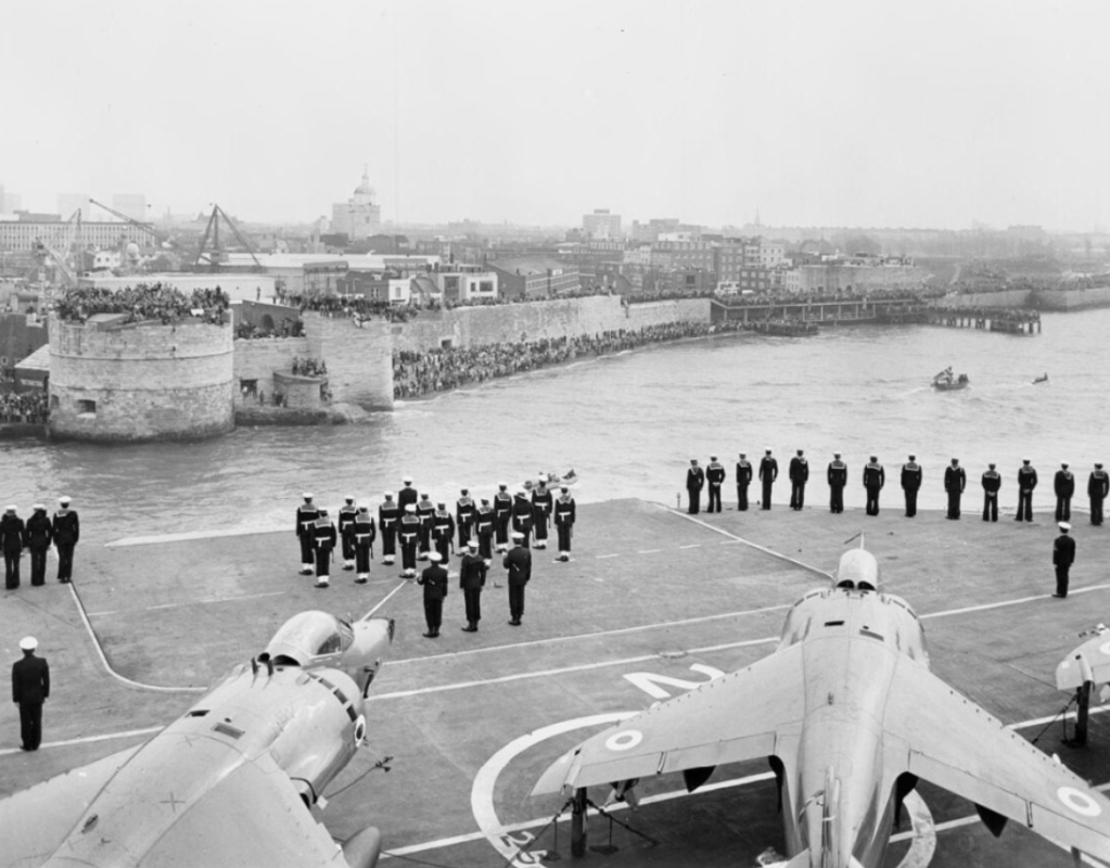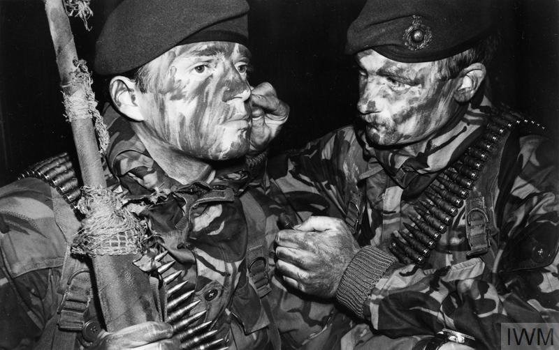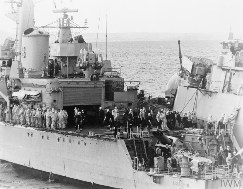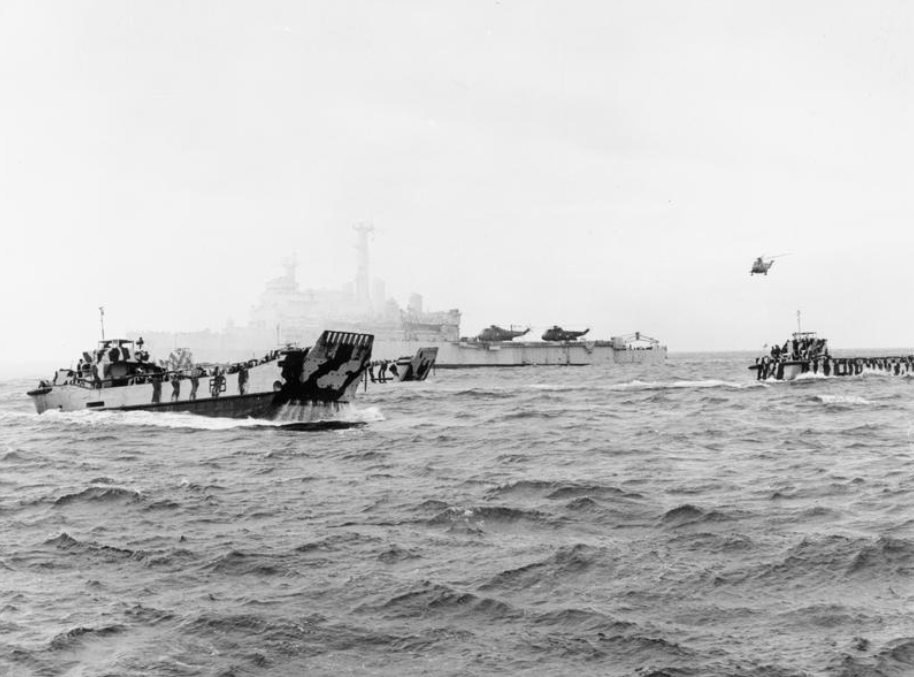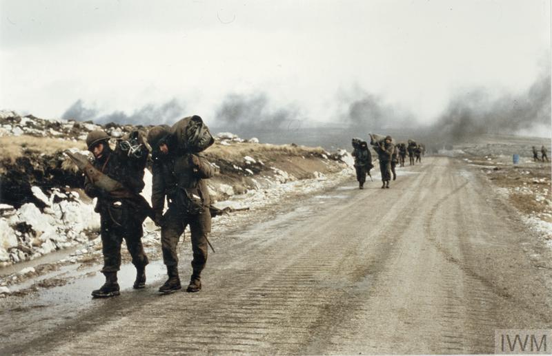 HMS HERMES about to berth at Portsmouth Harbour on her return from the Falkland Islands, 21 July 1982.HMS HERMES passes HMS VICTORY as she enters Portsmouth harbour on returning from the Falklands on 21 July 1982.The aircraft carrier HMS HERMES sails out of Portsmouth for the South Atlantic, at the start of the Falklands War, 1982.HMS HERMES leaves Portsmouth for the South Atlantic, 5 April 1982.View from HMS HERMES of the vast number of small boats which welcomed the aircraft carrier home from the Falklands and escorted her into Portsmouth Harbour on 21 July 1982.Surrounded by life rafts launched by her crew, the Argentine cruiser GENERAL BELGRANO sinks after being torpedoed by the British submarine HMS CONQUEROR on 2 May 1982.THE FALKLANDS CONFLICT, APRIL – JUNE 1982 (FKD 4) The Churchill class nuclear powered submarine HMS CONQUEROR returns to her base at Faslane in Scotland on 3 July 1982 after deployment to the South Atlantic during which she sank the Argentine cruiser GENERAL BELGRANO on 2 May 1982. HMS CONQUEROR was the first nuclear submarine to sink another warship in combat. Two British Aerospace Sea Harrier FRS 1s in flight. They are from background to foreground: ZA176 and XZ451 both of 801 Naval Air Squadron.Two British Aerospace Sea Harrier FRS 1s in flight. Nearest to the camera is ZA176 of 801 Naval Air Squadron. The other aircraft is believed to be XZ451 also of 801 NAS.A formation of Royal Navy Sea Harriers in flight shortly before being deployed during the Falklands Conflict.THE FALKLANDS CONFLICT, APRIL – JUNE 1982 (FKD 83) A British Aerospace Sea Harrier (ZA177) of No 800 Naval Air Squadron, Fleet Air Arm, piloted by Lt Simon Hargreaves lands on the flight deck of the amphibious assault ship, HMS INTREPID during the Battle for Tumbledown on 13 June 1982. The Harrier was unable to use the SHEATHBILL temporary airstrip on the Falkland Islands and lacked the fuel to return to HMS HERMES. It therefore diverted to HMS INTREPID which had been recommissioned at the start of the Conflict.HMS PLYMOUTH on fire after being attacked by five Argentine Mirage aircraft on 8 June 1982. The ship was badly damaged but survived.HMS ARGONAUT on fire in San Carlos Water after being attacked and badly damaged in Argentine air attacks on 21 May 1982.The sinking of HMS ANTELOPE in San Carlos Water. The explosion of the second Argentine 1000-lb bomb on board the ship broke its back and cause the frigate to sink. A bomb disposal officer had been attempting to defuse the bomb at the time.The sinking of HMS ANTELOPE in San Carlos Water. Argentine 500lb bombs explode on board HMS ANTELOPE on the night of 23-24 May 1982. Two bombs had been dropped by an Argentine aircraft flying at extremely low level on HMS ANTELOPE during the day of 23 May. The bombs, which did not explode, lodged in the engine room of the ship. One detonated while it was being defused. The explosion broke the back of the ship which sank.The bow and stern sections of HMS ANTELOPE in San Carlos Water in the Falkland Islands after the ship was sunk by Argentine air attack on 24 May 1982.The sinking of the Royal Navy frigate HMS ARDENT. Close up showing the stern of HMS ARDENT on fire after being attacked for the second time in San Carlos Water by the Argentine Air Force on 21 May 1982. No fewer than five bombs had struck ARDENT’s hangar and flight deck area and 22 lives were lost.The sinking of the Royal Navy frigate HMS ARDENT. HMS ARDENT on fire, with HMS YARMOUTH alongside, after being attacked for the first time in San Carlos Water by the Argentine Air Force on 21 May 1982. The ship had been struck by two 1,000lb bombs and 22 lives lost. HMS YARMOUTH attempted to assist with firefighting and then evacuated the crew (who can be seen lining the side of the ship.Survivors of HMS ARDENT wearing “once-only” survival suits, on the flight deck of HMS YARMOUTH after abandoning ship in San Carlos Water on 21 May. HMS ARDENT had been damaged in two Argentine air attacks.The abandoned HMS ARDENT in San Carlos water after two Argentine air attacks. HMS YARMOUTH (left) pulls away from ARDENT after taking off her crew.A low aerial view of HMS ARDENT at anchor in San Carlos Water after being damaged in the stern by the first of two Argentine air attacks by A4-Q Skyhawks of the Argentine Navy’s 3rd Fighter Attack Squadron. In this attack, two 500lb bombs exploded in the Ship’s hangar, destroying the Westland Lynx helicopter and Seacat missile launcher. A third bomb lodged in the After Auxiliary Machinery Room without exploding. Although not disabled at the time of this photograph, the subsequent air attack brought the Ship to a halt. HMS ARDENT sank on 22 May.Damage to the hangar and after superstructure of HMS ARDENT sustained in two attacks in Falkland Sound by A4-Q Skyhawks of the Argentine Navy’s 3rd Fighter Attack Squadron in San Carlos Water on 21 May 1982. In the first attack, two 500-lb bombs exploded in the Ship’s hangar, destroying the Westland Lynx helicopter and Seacat missile launcher and a third lodged in the After Auxiliary Machinery Room without exploding. In the second attack, two more direct hits on the Ship’s stern caused the fires to spread out of control and brought her to a halt. Twenty two lives were lost during the attack. HMS ARDENT sank on 22 May.Lieutenant Commander N D Ward AFC RN, Commanding Officer of No 801 Naval Air Squadron, Fleet Air Arm on board HMS INVINCIBLE. The photograph is believed to have been taken on 21 May after Lt Cmdr Ward shot down an Argentine Mirage. He is seen here wearing his flying helmet.A Royal Navy gunner mans a deck mounted 7.62mm General Purpose machine gun for use against low-level Argentine air attack in San Carlos Water. He is wearing an anti flash hood and gauntlets as protection against the possibility of fire.Royal Marines from 3 Commando Brigade raise the Union Jack on landing at San Carlos beachhead during Operation SUTTON on 21 May 1982.The San Carlos land