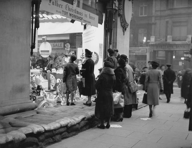 A children’s Christmas party at the Hoxton Mission, London, 18th November 1933A family look at the sparkling lights on the Christmas tree at St. Paul’s Cathedral, London, 16th November 1938Christmas at night on Regent Street, 1960Christmas atmosphere on Electric Avenue, Brixton, London, 1908Christmas decorations on Electric Avenue, Brixton, 1911Christmas lights on Regent Street, 1955Christmas shopping on Oxford Street, London, 1937Christmas trees in Covent Garden Market, 1952Crowds of Christmas shoppers on Oxford Street, London, December 1936Father Christmas delivering presents to the Children’s Aid and Adoption Society at Leytonstone, 20th November 1931Father Christmas hands out presents to children at the Aid And Adoption Society home at Leytonstone, 1938Father Christmas walks on the streets of wartime London, 23rd December 1940Mod Christmas decorations on London’s Carnaby Street, 1967Sandbags are placed outside the shop window at Selfridges to protect it during the first Christmas of World War II, 1939Santa Claus drives a motorcycle past a bus through Oxford Street, London using the sidecar to hold his toys, 1949Taking the Christmas tree home, Chelsea, London, 1915The Regent Street Christmas lights on evening, London, 1960