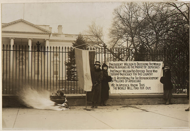 In 1916 Alice Paul formed the National Woman’s Party (NWP), a militant group focused on the passage of a national suffrage amendment. Over 200 NWP supporters, the Silent Sentinels, were arrested in 1917 while picketing the White House, some of whom went on hunger strike and endured forced feeding after being sent to prison. Under the leadership of Carrie Chapman Catt, the two-million-member NAWSA also made a national suffrage amendment its top priority. After a hard-fought series of votes in the U.S. Congress and in state legislatures, the Nineteenth Amendment became part of the U.S. Constitution on August 18, 1920. It states, “The right of citizens of the United States to vote shall not be denied or abridged by the United States or by any State on account of sex.” (Wikipedia)