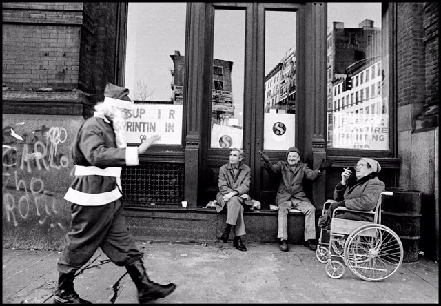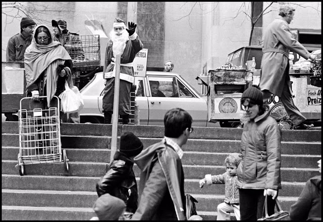 Santa Claus has come to town many times, and he’s hung out in some unlikely places. Shown is an amazing collection of black and white photographs of Santa Clauses on the streets of New York City, taken by Magnum photographer Susan Meiselas from 1976-1978.