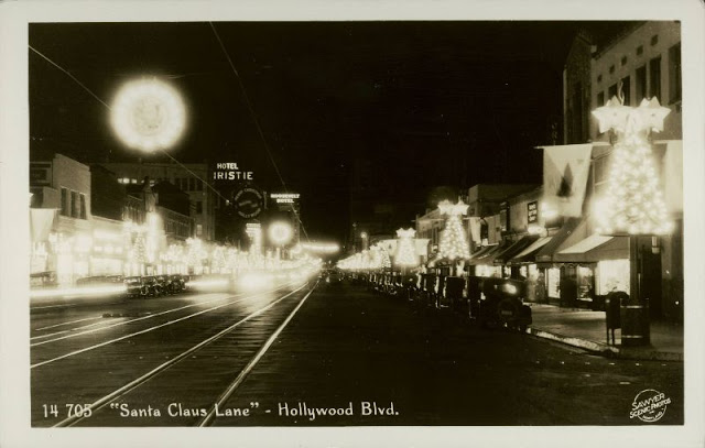 Each November beginning in 1928, Hollywood merchants transformed a one-mile stretch of Hollywood Boulevard between Vine and La Brea into Santa Claus Lane to boost shopping. Part of the promotion was a daily parade featuring Santa Claus and a film star.