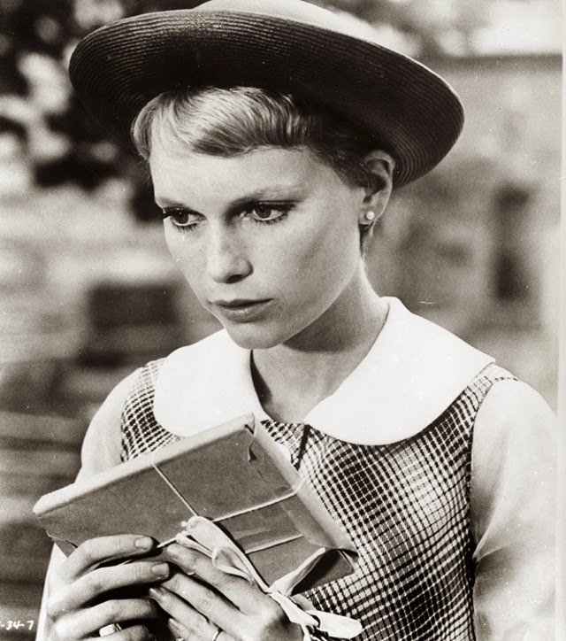 The eldest daughter of Australian director John Farrow and Irish actress Maureen O’Sullivan, Farrow had a strict Catholic upbringing in Beverly Hills, California. After working as a fashion model during her teenage years, she first gained notice for her role as Allison MacKenzie in the television soap opera Peyton Place (1964–1966). Her credited feature film debut in Guns at Batasi (1964) earned her a Golden Globe Award for New Star of the Year, and she gained further recognition for her subsequent two-year marriage to Frank Sinatra, whom she married at age 21. Her portrayal of Rosemary Woodhouse in Roman Polanski’s horror film Rosemary’s Baby (1968) earned her a nomination for a BAFTA Award and a Golden Globe Award for Best Actress. She received a third Golden Globe nomination for her role in John and Mary (1969).